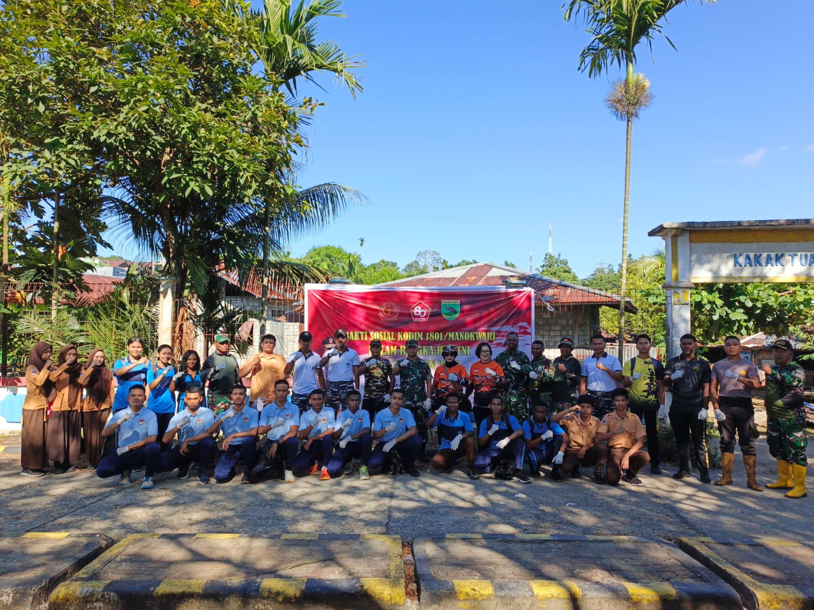 Dipimpin langsung oleh Komandan Kodim 1801/Manokwari, Letkol Inf Davit Sutrisno Sirait, S.E., kegiatan ini melibatkan kekuatan lintas sektor. Ratusan personel gabungan dari Kodim 1801/Manokwari, Fasharkan TNI AL, Polresta Manokwari, FKPPI, para pelajar dari SMA Taruna, SMA Negeri 1, SMA Yapis, hingga masyarakat Kelurahan Wirsi dan Arkuki bergotong royong membersihkan sampah yang menumpuk di kawasan Teluk Sawaibu.