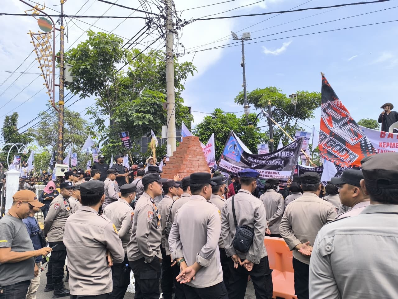 Kapolres Indramayu, AKBP Mochamad Fajar Gemilang, melalui Kasi Humas Polres Indramayu AKP Tarno, menjelaskan pihaknya telah melakukan upaya persuasif dan humanis dalam mengawal jalannya aspirasi masyarakat tersebut.