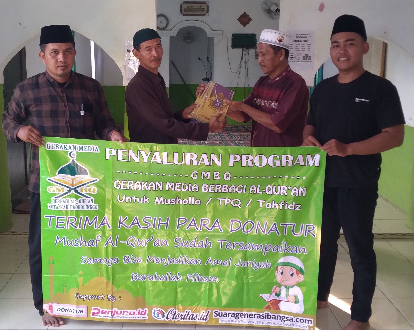 Probolinggo – Komunitas Gerakan Media Berbagi Al – Qur’an (GMBQ) Probolinggo Raya kembali menunjukkan komitmennya dalam hal berkegiatan sosial di bidang keagamaan salah satunya melalui penyaluran Wakaf Al – Qur’an ke Masjid dan TPQ yang tersebar di 4 titik, Sabtu (11/10/2025) sore.
