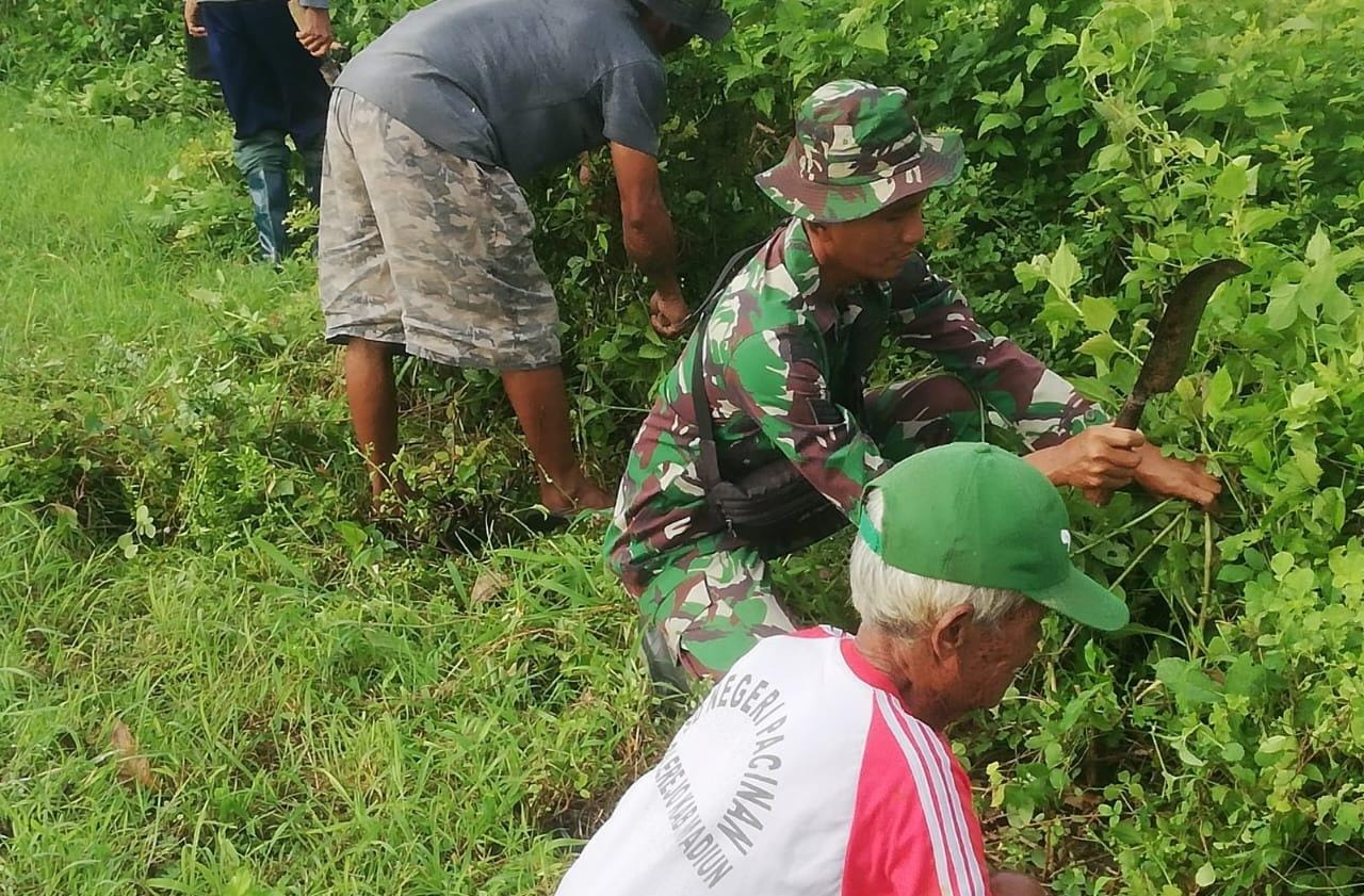 MADIUN, BUSERJATIM.COM GROUP – Anggota Koramil Tipe B 0803/03 Balerejo, Serka Agung, bersama masyarakat setempat melaksanakan kegiatan karya bhakti berupa pembersihan di sepanjang pinggir jalan raya dan saluran irigasi di wilayah Kecamatan Balerejo, Kabupaten Madiun, Minggu (19/1). Kegiatan ini dilakukan sebagai bentuk kepedulian terhadap kebersihan lingkungan sekaligus mendukung kelancaran fungsi saluran irigasi yang sangat vital untuk kebutuhan pertanian warga.