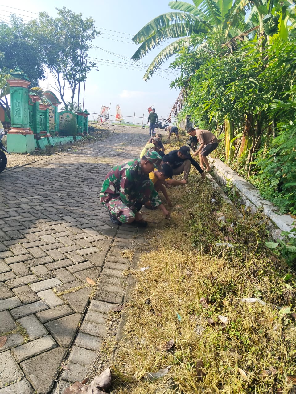 Dalam kesempatan itu, Babinsa dan masyarakat bahu membahu bergotong royong pembersihan jalan guna terciptanya lingkungan yang bersih dan nyaman di masyarakat.