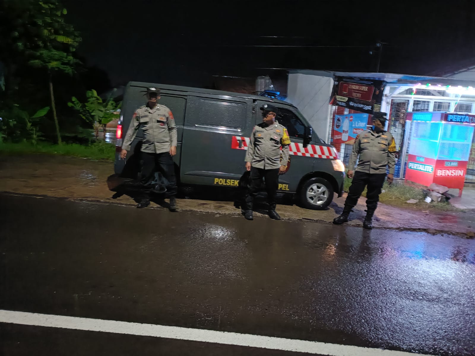 Kehadiran polisi berseragam di tengah lingkungan warga diharapkan dapat memberikan efek gentar bagi para pelaku kejahatan sekaligus menghadirkan rasa aman dan nyaman bagi masyarakat yang sedang beristirahat.