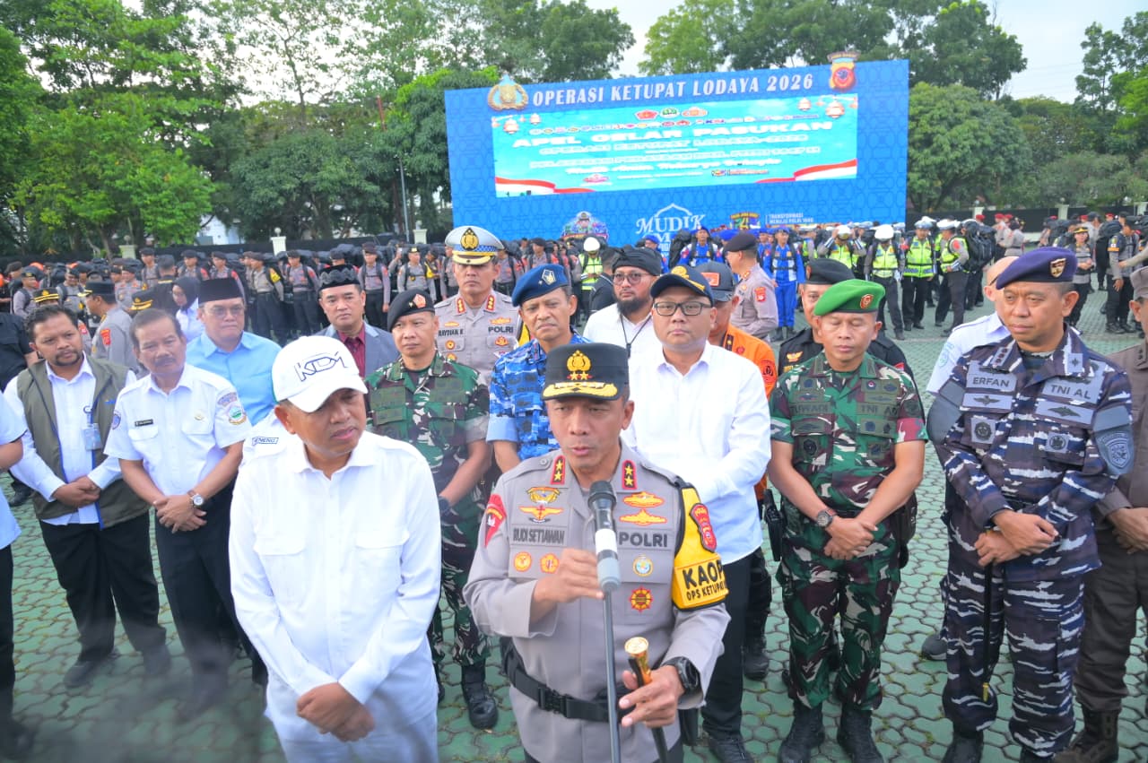 “Apel gelar pasukan ini merupakan bentuk pengecekan kesiapan personel maupun sarana dan prasarana, sekaligus wujud komitmen serta sinergisitas lintas sektor guna menyukseskan Operasi Ketupat 2026, sehingga pelaksanaan mudik dan perayaan Idul Fitri dapat berjalan dengan aman, nyaman, tertib dan lancar,” ujar Irjen Pol Rudi Setiawan.