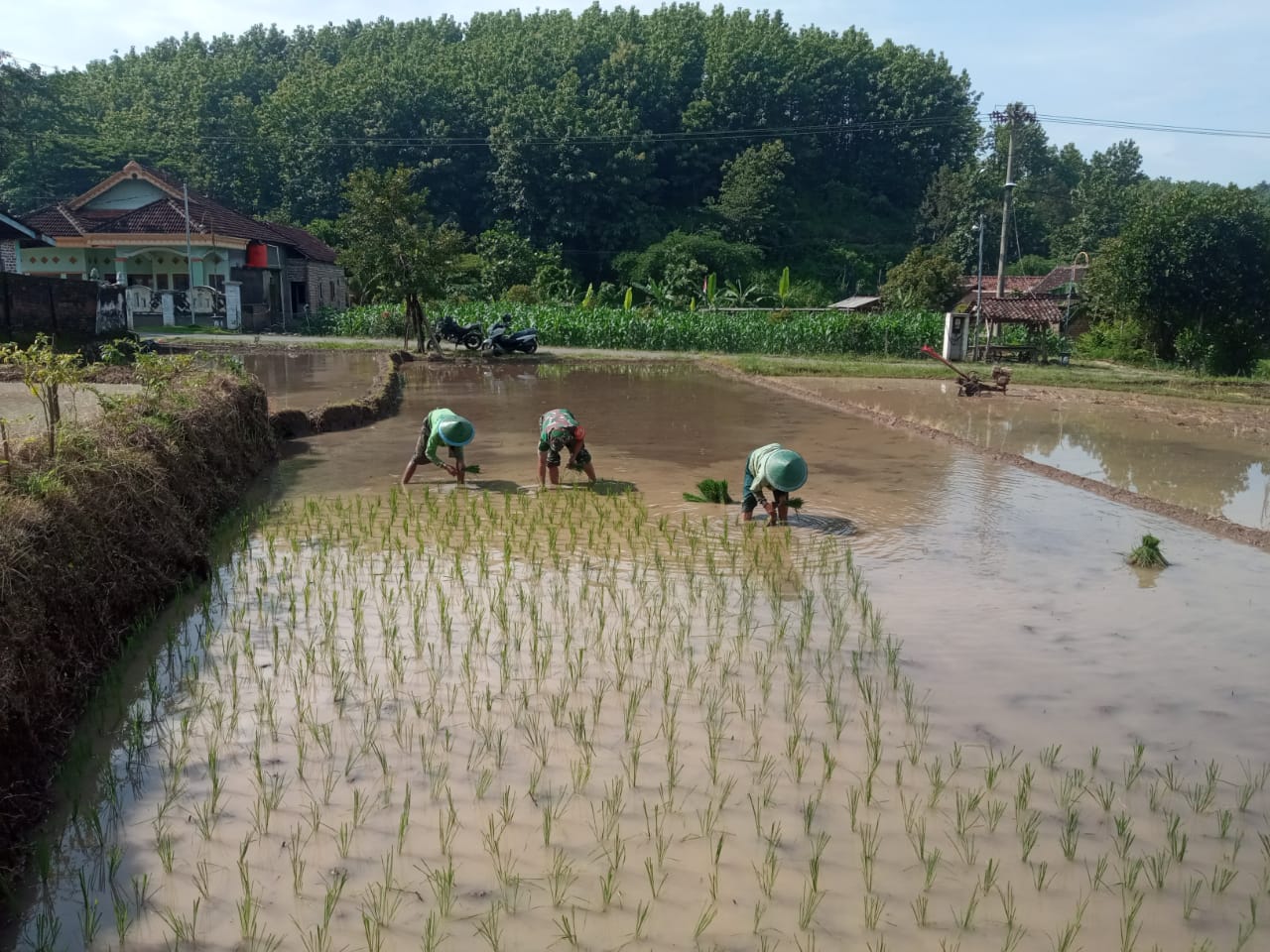 Serda Eko Heny terjun langsung ke sawah bersama para petani untuk menanam bibit padi di lahan pertanian milik salah seorang anggota Gapoktan. Kehadiran Babinsa di tengah-tengah petani tidak hanya memberikan semangat, tetapi juga menjadi bentuk pendampingan TNI dalam mendukung sektor pertanian. “Kami dari TNI, khususnya Babinsa, akan terus mendampingi para petani agar program ketahanan pangan di desa ini dapat berjalan dengan optimal,” kata Serda Eko Heny.