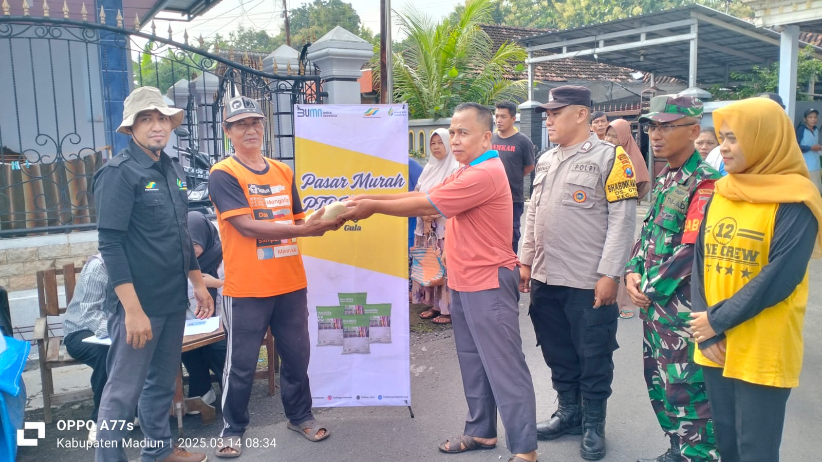 MADIUN, BUSERJATIM.COM GROUP – Babinsa Desa Uteran Koramil 0803/11 Geger Sertu Suprapto melaksanakan pendampingan pada kegiatan pasar murah gula pasir yang diselenggarakan oleh Pabrik Gula (PG) Pagotan pada Senin (17/3). Bertempat di Dusun Gulingan RT.08 RW.03, Desa Uteran, Kecamatan Geger, Kabupaten Madiun, kegiatan ini bertujuan untuk membantu masyarakat mendapatkan bahan pokok dengan harga terjangkau.