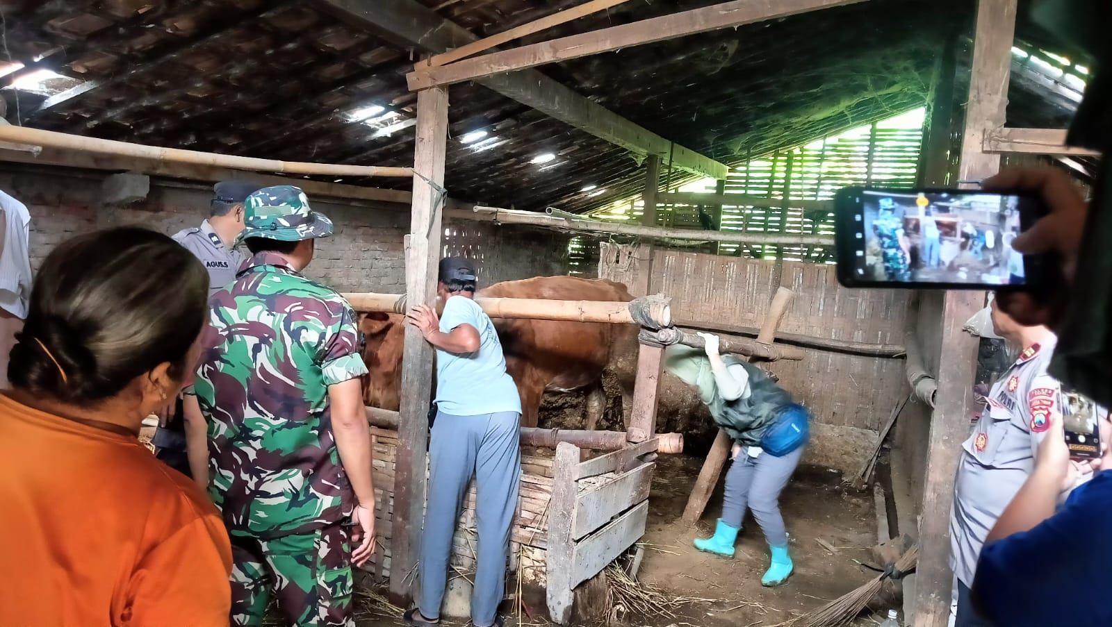 Babinsa Karangjati Bersama Dinas Peternakan Sosialisasi dan Vaksinasi Hewan Ternak Sapi di Desa Sembung untuk Cegah Virus PMK
