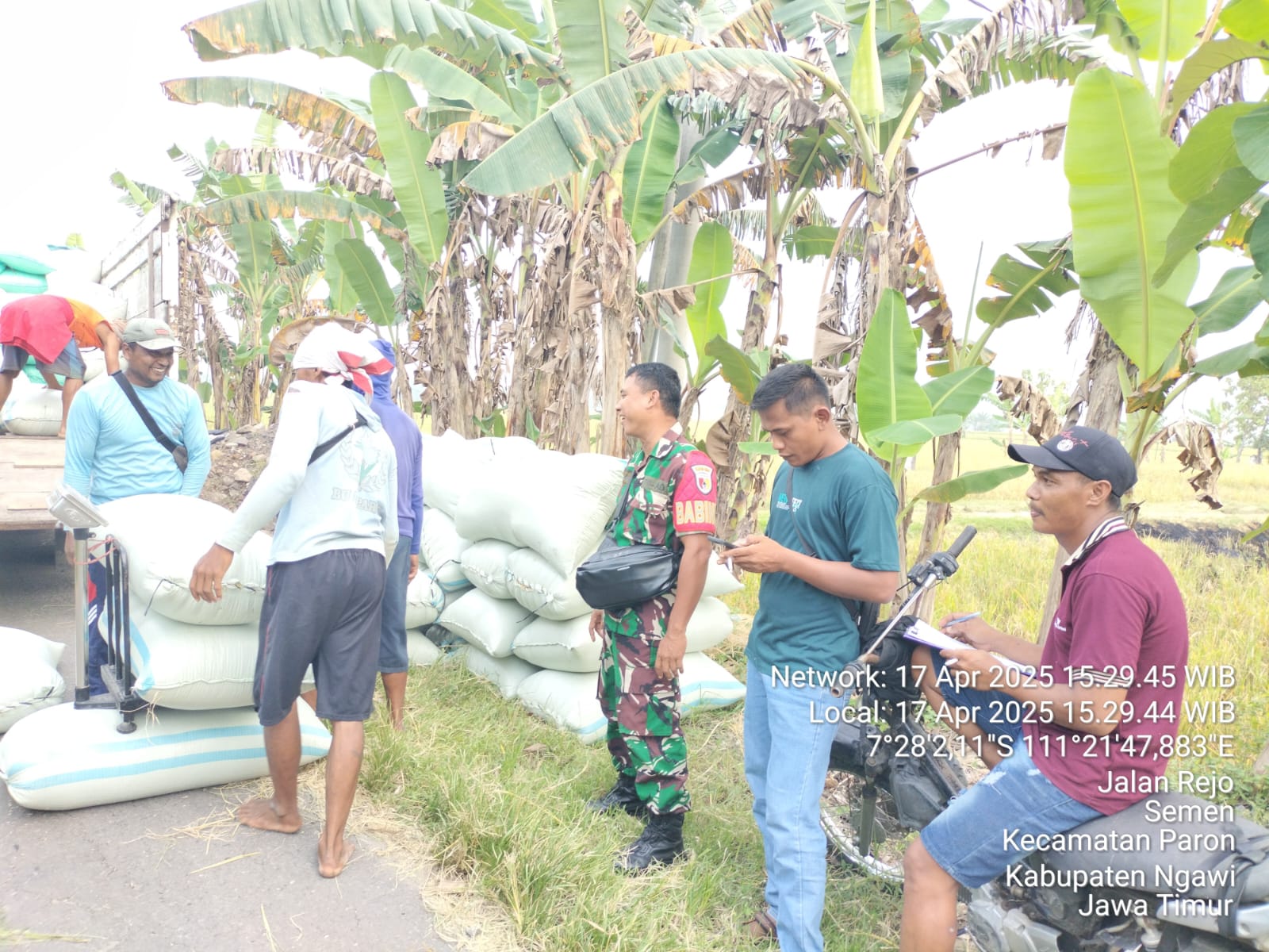 NGAWI, BUSERJATIM.COM GROUP – Dalam upaya meningkatkan kesejahteraan petani sekaligus mendukung program pemerintah menuju swasembada pangan, Babinsa Koramil 0805/02 Paron Kodim 0805 Ngawi Serka Sugiono mendampingi Kelompok Tani (Poktan) Sri Rejeki dalam kegiatan Serapan Gabah Petani (Sergab) ke Perum Bulog.