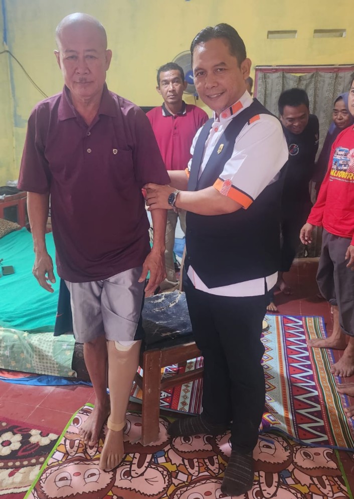 MAJALENGKA – Ketua Komisi 3 DPRD Kabupaten Majalengka, H. Iing Misbahuddin, S.M. menunjukkan kepedulian nyata terhadap penyandang disabilitas dengan menyerahkan bantuan kaki palsu kepada Bapak Wardini, seorang warga Desa Gandu Kecamatan Dawuan, Rabu (28/1).