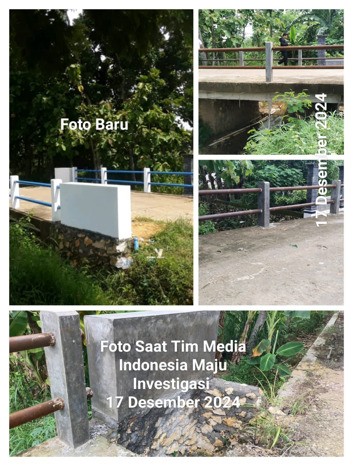 Atas adanya aduan tersebut,salah satu dari wartawan media Indonesia maju langsung turun kelapangan guna melakukan investigasi,pada saat itu kondisi jembatan juga cukup parah terlihat banyak retakan, terlihat dari foto yang di ambil pada tanggal 17 Desember 2024 ,jadi bagi kami setelah melihat foto dari pemberitaan yang sekarang beredar , terlihat jembatan sudah di perbaiki,dan terlihat sudah lebih rapih dan di cat baru ,jadi itu tandanya pemerintah setempat memperhatikan keluhan masyarakat atas viralnya berita .