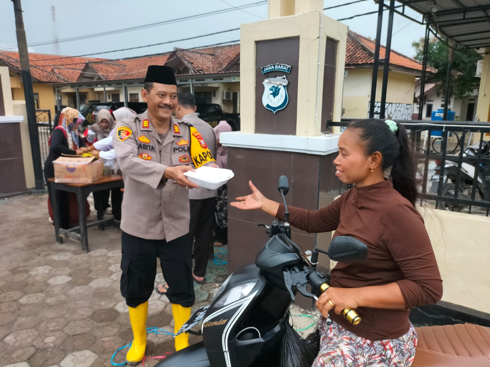 Dalam kesempatan itu, kata Kapolsek, kita membagikan takjil kepada masyarakat yang melintas di depan Mako Polsek Anjatan, Kecamatan Anjatan, Kabupaten Indramayu.