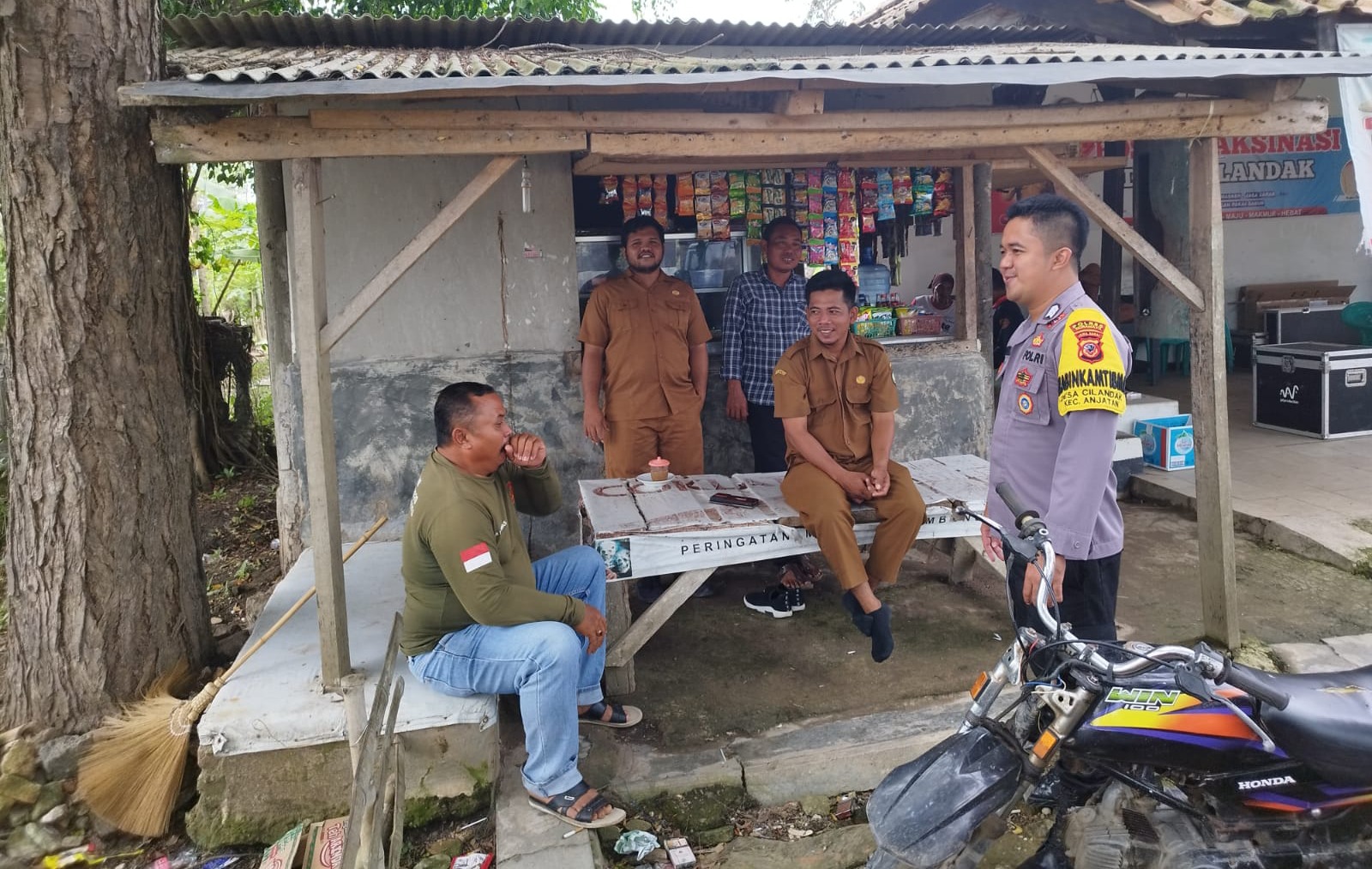 Indramayu,– Bhabinkamtibmas Polsek Anjatan jajaran Polres Indramayu Polda Jabar, melaksanakan patroli sekaligus sambang Kamtibmas dengan warga, di wilayah Kecamatan Anjatan, Kabupaten Indramayu, Sabtu (4/1/2025).