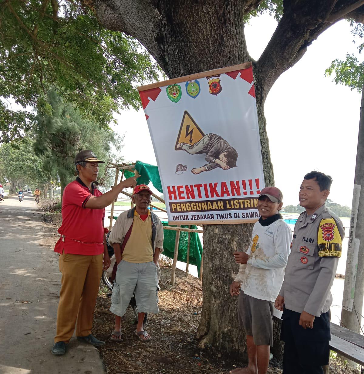 Indramayu, – Polsek Gabuswetan jajaran Polres Indramayu Polda Jabar lakukan pemasangan spanduk himbauan larangan penggunaan aliran listrik untuk jebakan tikus di Desa Kedokangabus Kecamatan Gabuswetan Kabupaten Indramayu, Jum’at (31/1/2025).