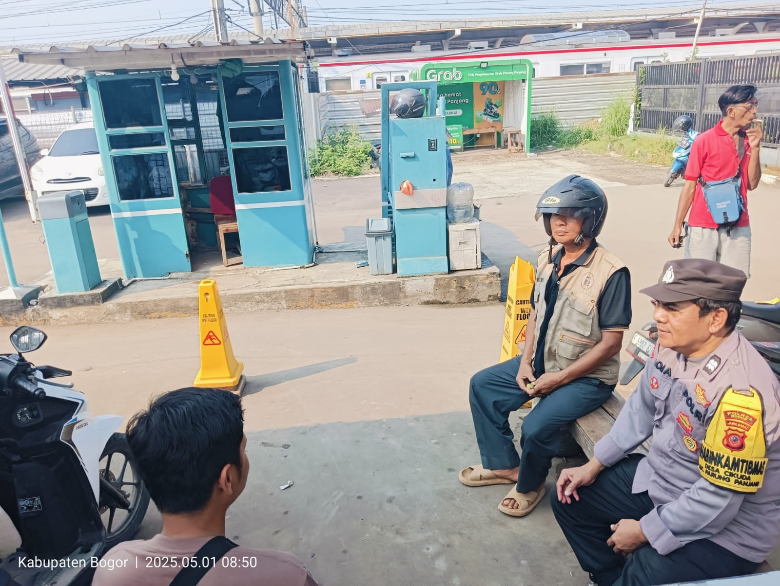 Bogor – Dalam rangka menjaga situasi keamanan dan ketertiban masyarakat (harkamtibmas) agar tetap aman dan kondusif, Bhabinkamtibmas Polsek Parungpanjang Polres Bogor Polda Jabar Aiptu Soma melaksanakan kegiatan sambang kepada tokoh masyarakat di area parkir Stasiun KAI Parungpanjang, Kecamatan Parungpanjang, Kabupaten Bogor, pada Kamis (16/10/2025).