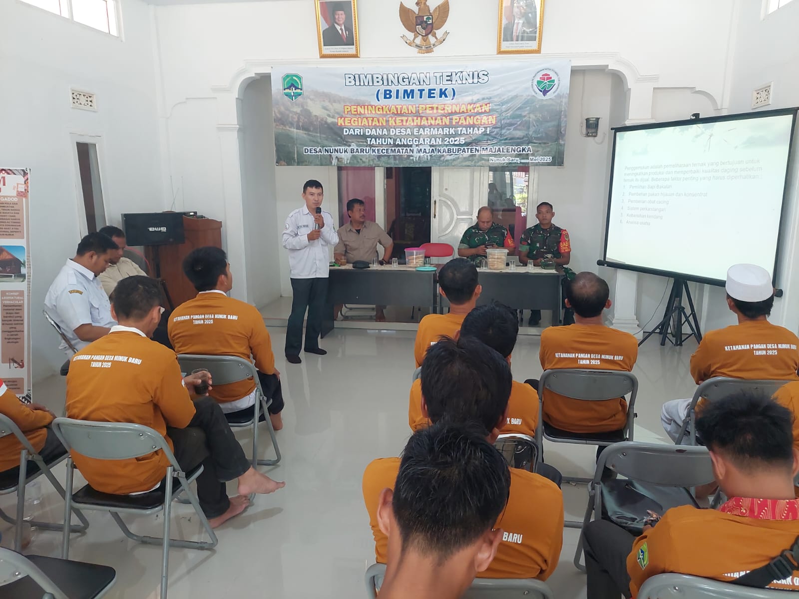 Majalengka – Dalam upaya meningkatkan kapasitas dan pengetahuan petani dalam bidang peternakan sapi, Pemerintah Desa Nunuk Baru bekerja sama dengan Dinas Ketahanan Pangan, Pertanian, dan Perikanan (DKP3) Kabupaten Majalengka menggelar kegiatan Bimbingan Teknis Peningkatan Peternakan Sapi pada Rabu (4/6/2025) pukul 09.00 WIB, bertempat di Desa Nunuk Baru, Kecamatan Maja.