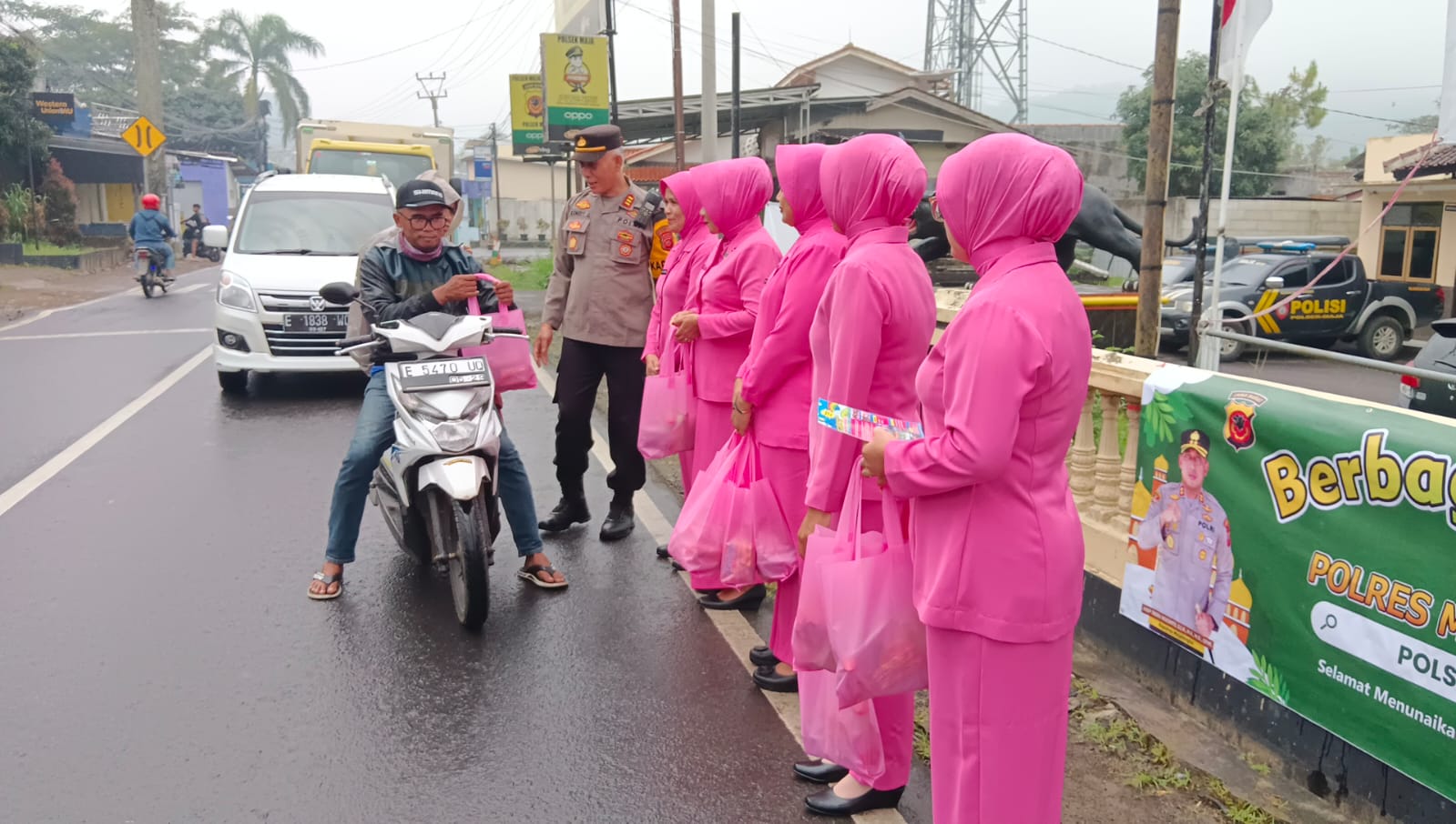 Majalengka, Dengan semangat kepedulian dan kebersamaan di Bulan Suci Ramadhan, Kepolisian Sektor (Polsek) Maja Polres Majalengka Polda Jabar bersama pengurus Bhayangkari menggelar aksi sosial membagikan takjil untuk berbuka puasa kepada warga, Kamis (20/3/25).