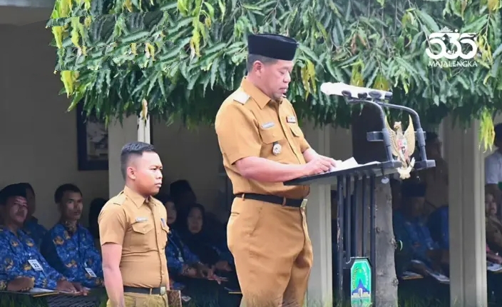 Majalengka – Program 100 hari kerja Bupati Majalengka Memberikan bonus sebagi bentuk apresiasi kepada para atlet dan pelatih berprestasi yang meraih medali di ajang Pekan Paralimpiade Nasional (Peparnas) dan luncurkan Program BERDAYA (Berikan Ruang Bagi Disabilitas untuk Berkarya dan Berprestasi) dan TERBAIK (Terwujudnya BLUD RSUD Talaga yang Amanah, Integritas dan Kompeten), pada Apel Senin Bersama di lingkungan Pemda Kabupaten Majalengka. Senin (02/07/2025)