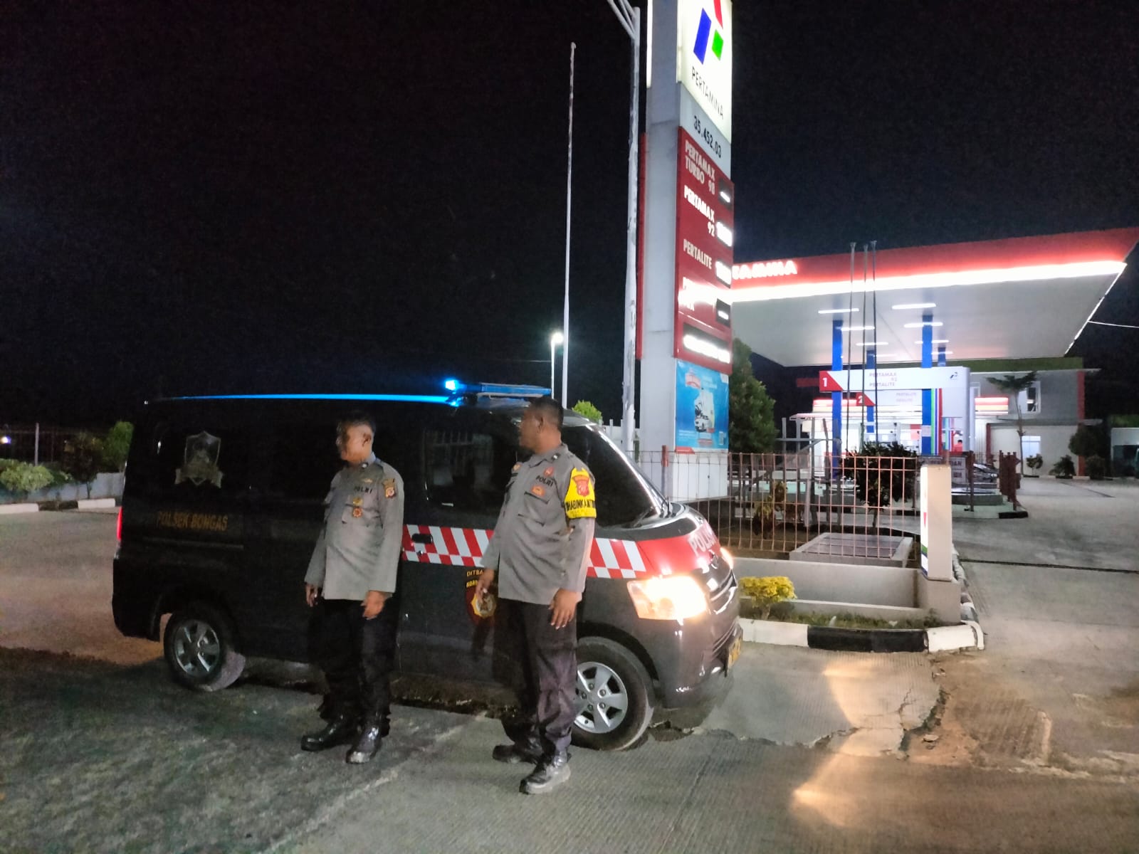 Patroli yang dilaksanakan ini menyasar pemukiman warga, jalan utama, hingga Pos satkamling di Desa Bongas.