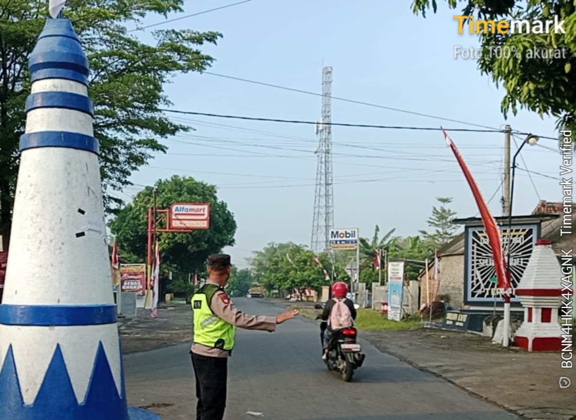 Ngawi,Buserjatim.com group – Dalam rangka menciptakan keamanan, keselamatan, ketertiban, dan kelancaran lalu lintas (Kamseltibcarlantas), Kapolsubsektor Gerih Iptu Sukarno bersama anggotanya melaksanakan giat pengaturan pagi di depan SD Negeri Guyung 2 serta di Simpang Tiga Kayut, Kecamatan Gerih, Kabupaten Ngawi.