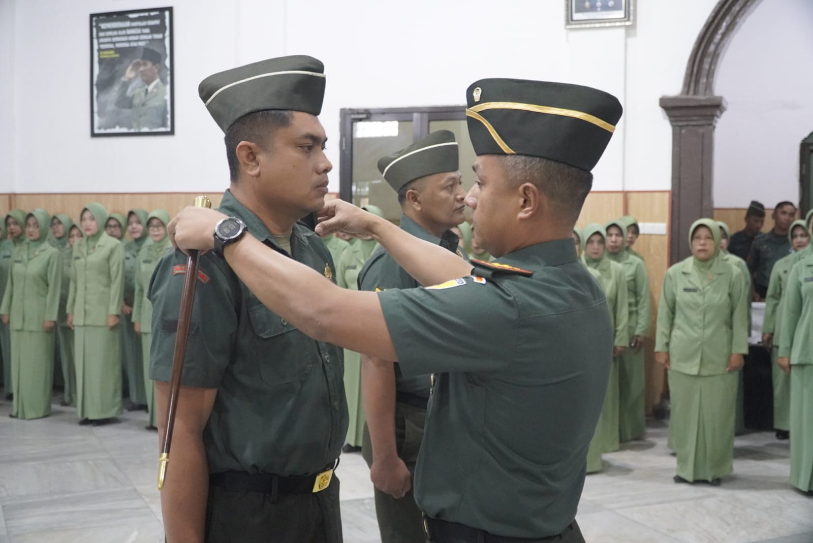MADIUN, BUSERJATIM.COM GROUP – Komandan Distrik Militer (Dandim) 0803/Madiun, Letkol Kav Widhi Bayu Sudibyo, memimpin upacara pelantikan kenaikan pangkat bagi 35 personel jajaran Kodim 0803/Madiun periode 1 April 2025. Acara yang berlangsung khidmat ini diselenggarakan di Aula Makodim 0803/Madiun dan dihadiri oleh seluruh perwira dan anggota Kodim Madiun serta keluarga personel yang naik pangkat pada Rabu (9/4). Upacara pelantikan ini merupakan bentuk penghargaan atas dedikasi dan kinerja yang telah ditunjukkan oleh para prajurit dalam menjalankan tugasnya.