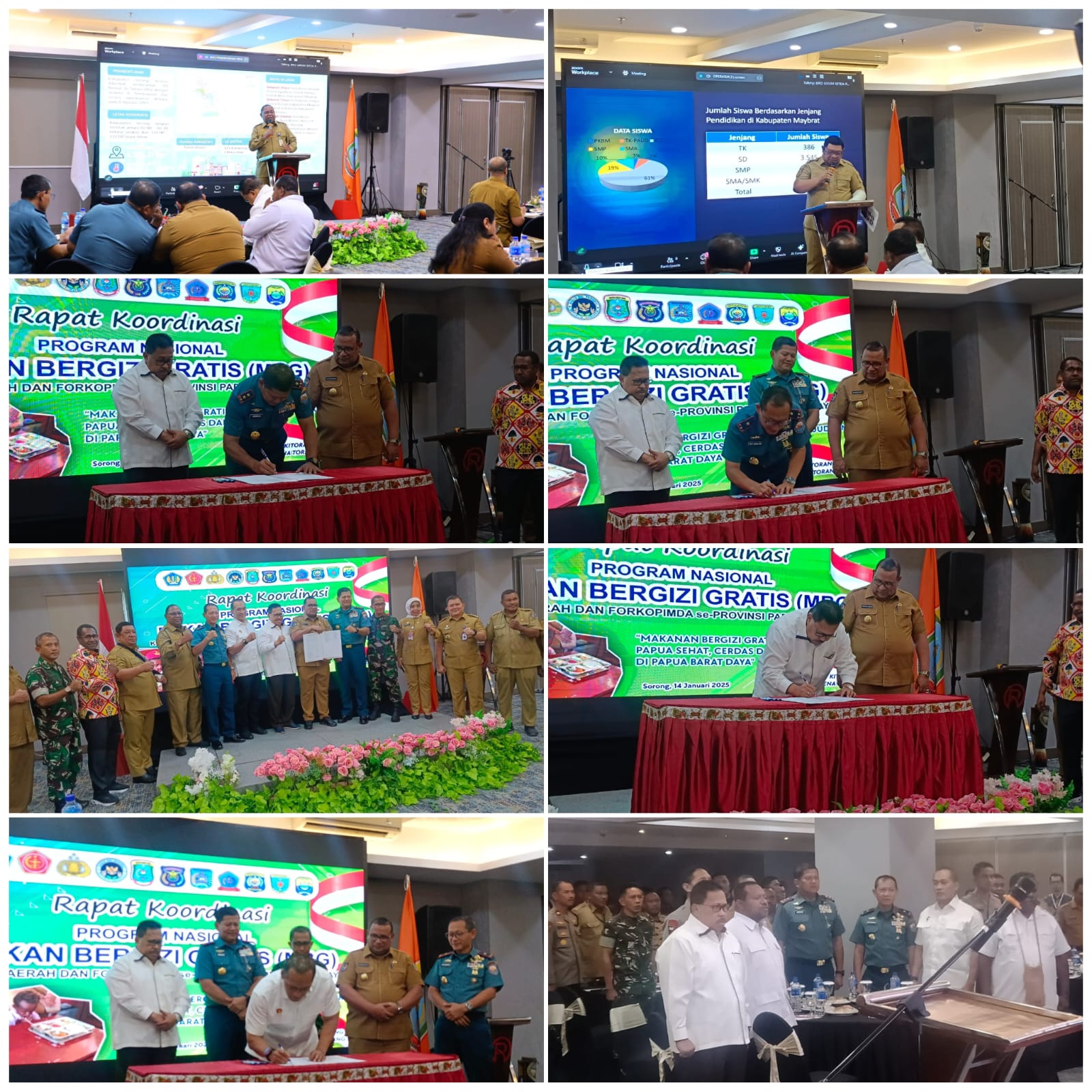 Bupati Sorong Selatan, Samsudin Anggiluli, SE., M. Tr. AP, juga memberikan laporan tentang upaya pemerintah daerah dalam memanfaatkan data pendidikan untuk mendukung pelaksanaan program ini, sementara Bupati Maybrat, Vincente Campana Baay, melaporkan kesiapan kabupaten tersebut dalam melaksanakan program MBG dengan menargetkan lebih dari 4.000 siswa sebagai penerima manfaat.