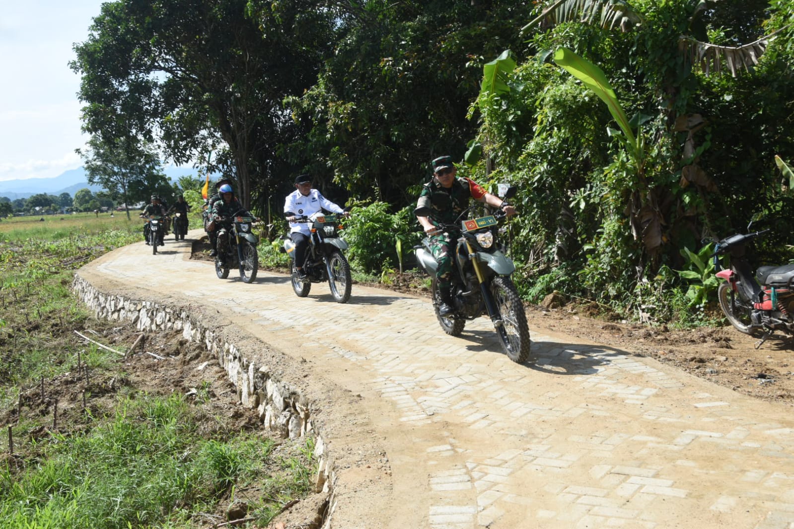 Dalam peninjauan ini, Brigjen TNI Ilham Yunus didampingi oleh Bupati HST Samsul Rizal, Dandim 1002/HST, serta unsur Forum Koordinasi Pimpinan Daerah (Forkopimda) HST. Rombongan meninjau sejumlah sasaran TMMD ke-124 Kodim 1002/HST yang telah rampung dikerjakan, memastikan kualitas dan manfaat dari pembangunan yang telah dilaksanakan.