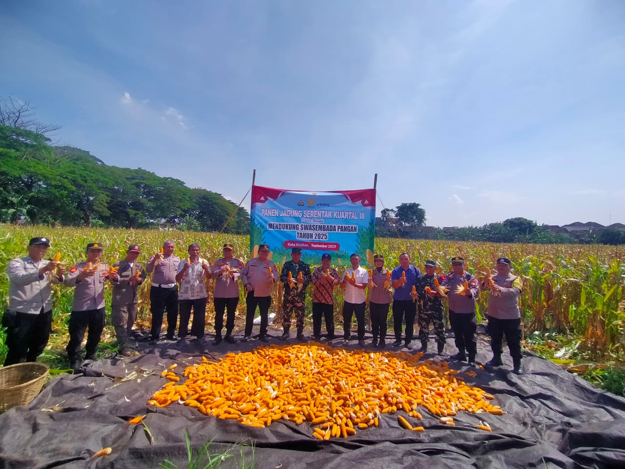 MADIUN,BUSERJATIM.COM GROUP– Polres Madiun Kota bersama masyarakat melakukan panen jagung di lahan pertanian kawasan Ciliwung, Kelurahan Taman, Kecamatan Taman, Kota Madiun pada Rabu (25/9/2025).