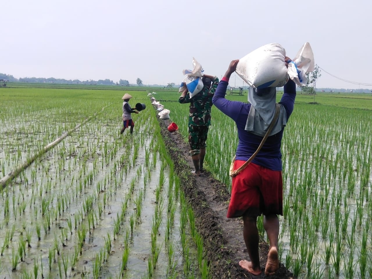“Pemupukan padi ini memang harus tepat waktu dan wajib dilakukan agar pertumbuhannya tetap baik hingga tiba masa panen. Jika tidak diberi pupuk, dikhawatirkan akan menimbulkan permasalahan seperti tanaman kurang subur, pendek dari ukuran normalnya bahkan daunnya menguning dan gagal panen, ”ujar Babinsa.
