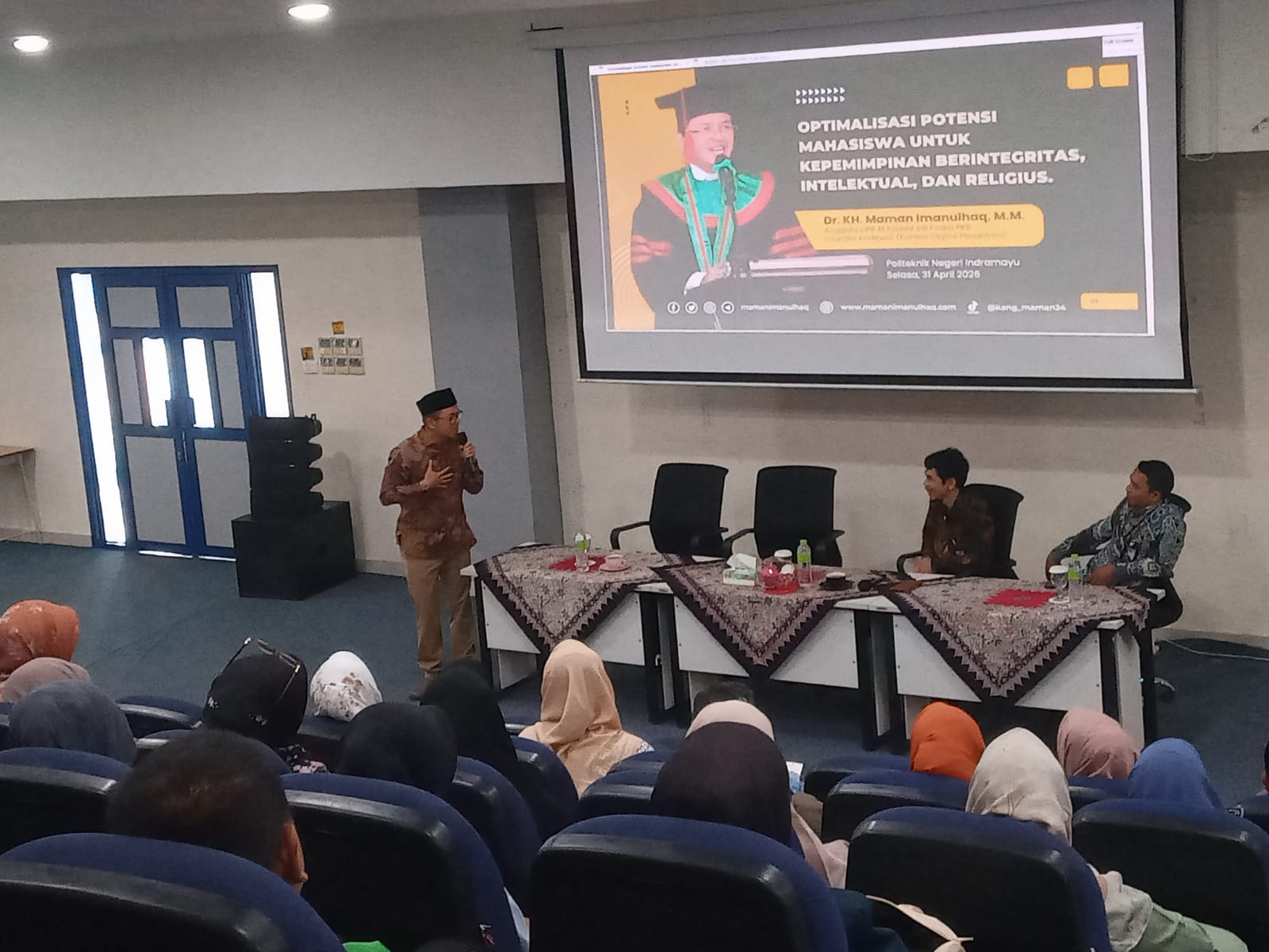 ppnews. id | | Indramayu – Politeknik Negeri Indramayu (Polindra) gelar Halal Bi Halal Dosen dan Tenaga Kependidikan dengan mengambil tema Tingkatkan Ukhuwah Islamiyah dan Pererat Tali Silaturahmi di isi dengan penceramah Dr. KH. Maman Imanulhaq, M. M. Pimpinan/Pondok Pesantren Al- Mizan Majalengka Selasa, 31 Maret 2026 bertempat di Gedung Students Center Lantai 7 Politeknik Negeri Indramayu.