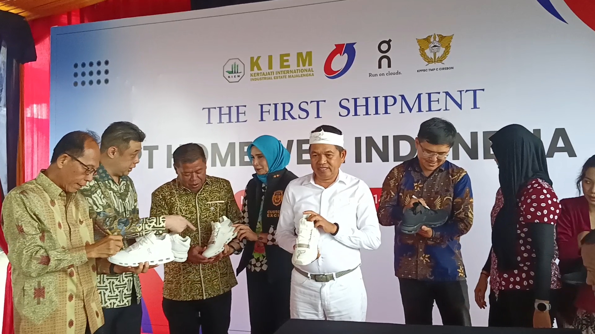 Gubernur Jawa Barat Dedi Mulyadi Melepaskan Ekspor Perdana Sepatu On Cloud Running Yang Diproduksi PT Home Well Indonesia di Kawasan KIEM
