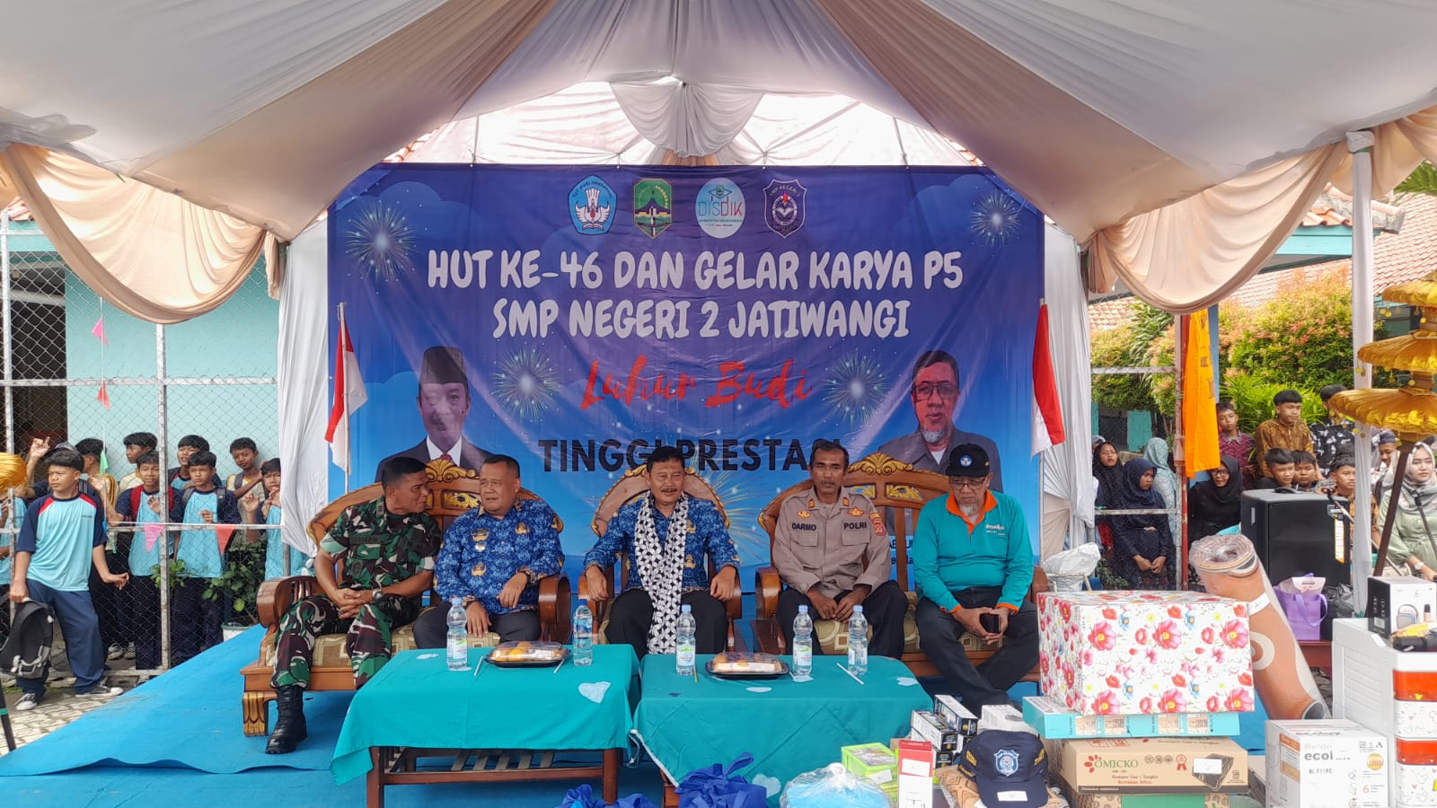 Majalengka || Danramil 1712/Jatiwangi Kapten Inf Maman Kardiman menghadiri HUT Ke-46 dan gelar karya P5 SMPN 2 Jatiwangi, yang berlokasi di Desa Ciborelang, Kecamatan Jatiwangi, Kabupaten Majalengka.