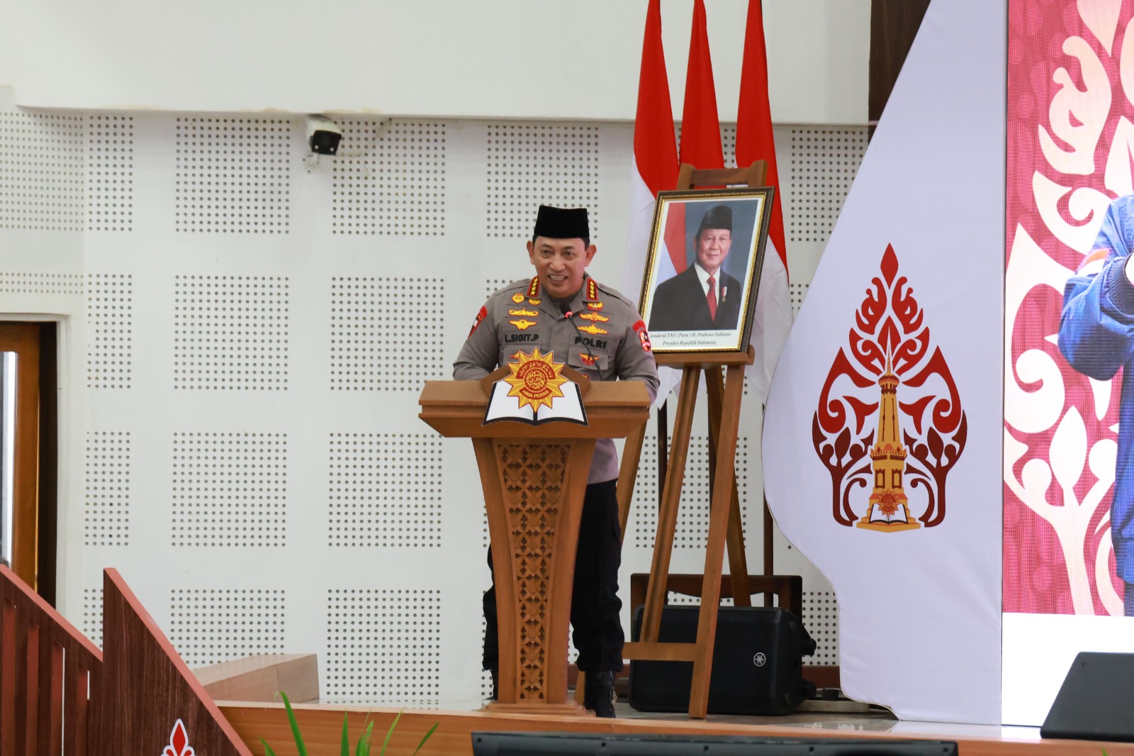Yogyakarta. Kapolri Jenderal Polisi Drs. Listyo Sigit Prabowo menghadiri penutupan Musyawarah Pleno Nasional Hima Persis di Yogyakarta. Kehadiran Kapolri tersebut turut didampingi Astamaops Irjen. Pol. Verdianto Iskandar Bitticaca, Kadivpropam Irjen. Pol. Abdul Karim, Kadivhumas Irjen. Pol. Sandi Nugroho, dan Wakabaintelkam Irjen. Pol. Yuda Gustawan.
