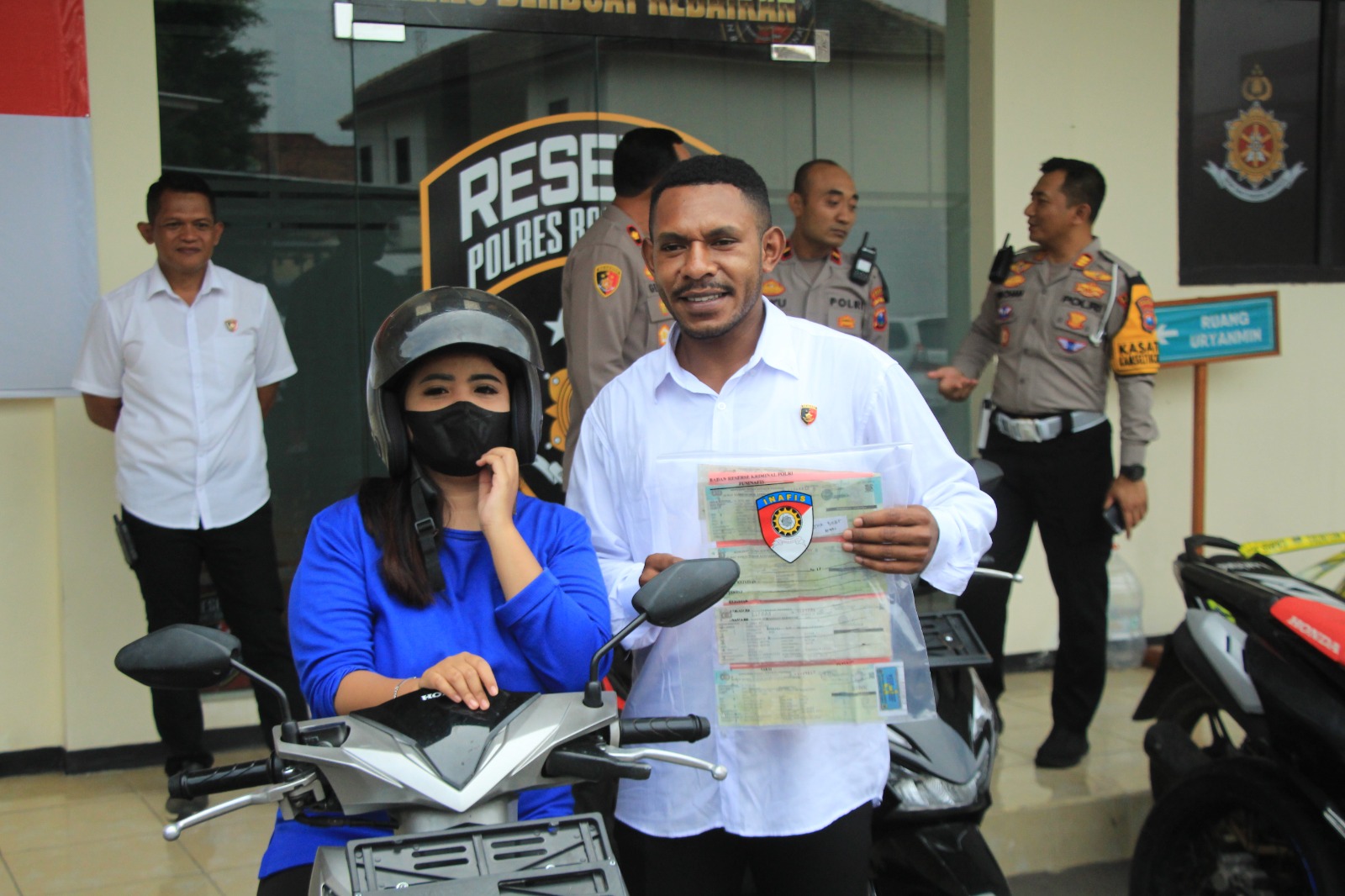 Penyerahan motor pada korban secara gratis ini, diserahkan langsung oleh Kapolres Bondowoso, AKBP Harto Agung Cahyono, pada Senin (24/3/2025).