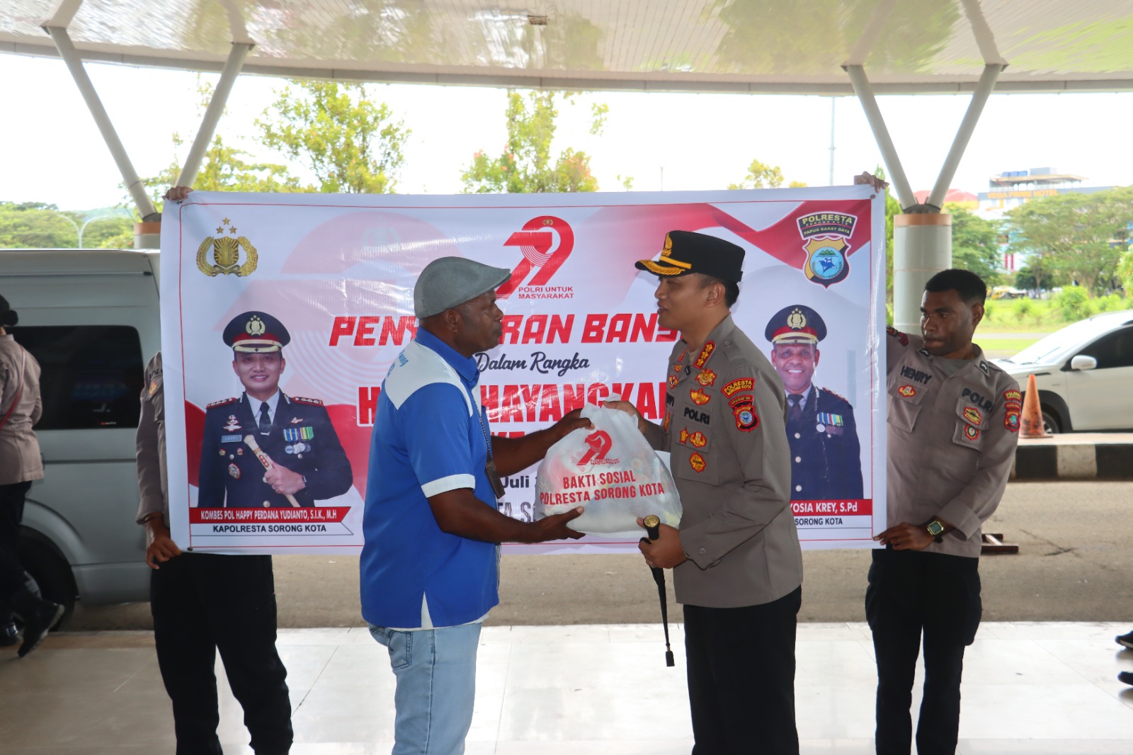 Pada anjangsana ini Polresta Sorong Kota sekaligus memberikan paket sembako kepada pensiunan polri dan warakawuri di Aspol Remu, sementara untuk pemberian bansos berupa paket sembako untuk buruh atau porter bandara Deo, pedagang Kaki Lima di Pasar Remu, para nelayan di Jembatan Puri, Pelabuhan Pelni dan di pasar Boswesen.