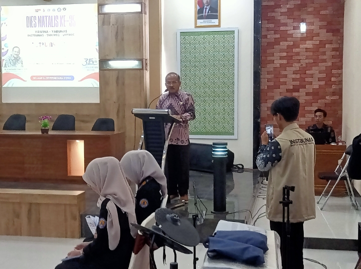 Dalam sambutan Rektor INSTBUNAS Majalengka Drs.H. Sudibyo BO,.S.Sos,SE,MM menyampaikan Berdirinya lembaga pendidikan tinggi yang ke 25 tapi grup kita mendirikan lembaga pendidikan itu tahun 1989 atau 1990 April jadi klw sekarang sudah 35 tahun, perguruan tinggi pertama kita pendidikan sekolah tinggi ilmu ekonomi (STIE) jadi institut kemarin tahun 2023 tapi perubahan sudah sekian tahun.