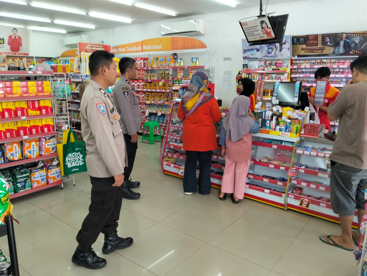 Majalengka – Dalam rangka menciptakan situasi yang aman dan kondusif serta mengantisipasi tindak kriminalitas C3 (Curat, Curas, dan Curanmor), Bhabinkamtibmas Polsek Cikijing Polres Majalengka Polda Jabar, Aiptu Usin bersama Ka SPKT II Aipda Mustopa menyambangi minimarket Alfamart yang berada di Desa Sukamukti, Kecamatan Cikijing, Kabupaten Majalengka, Selasa (14/10/2025).