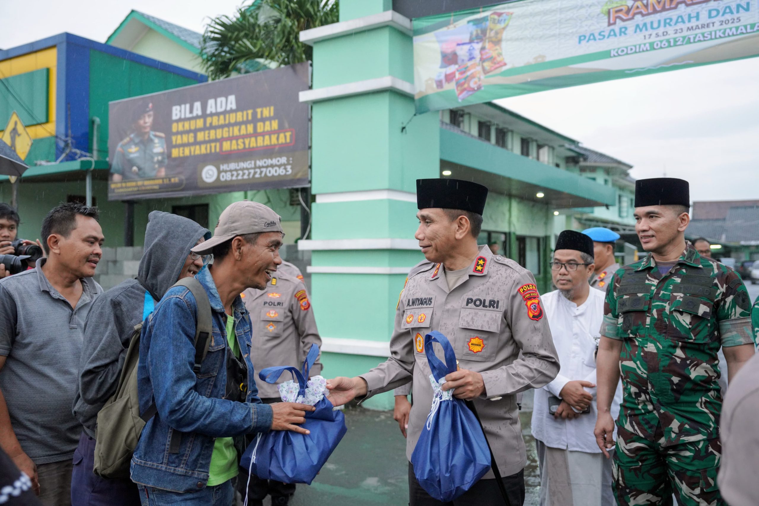 Kegiatan sinergisitas Polri – TNI yang dipimpin langsung Kapolda Jawa Barat Irjen Pol Akhmad Wiyagus dengan membagikan 1.000 paket takjil kepada masyarakat itu, digelar di depan Makodim 0612/Tasikmalaya, pada Sabtu (15/3/2025) sore.