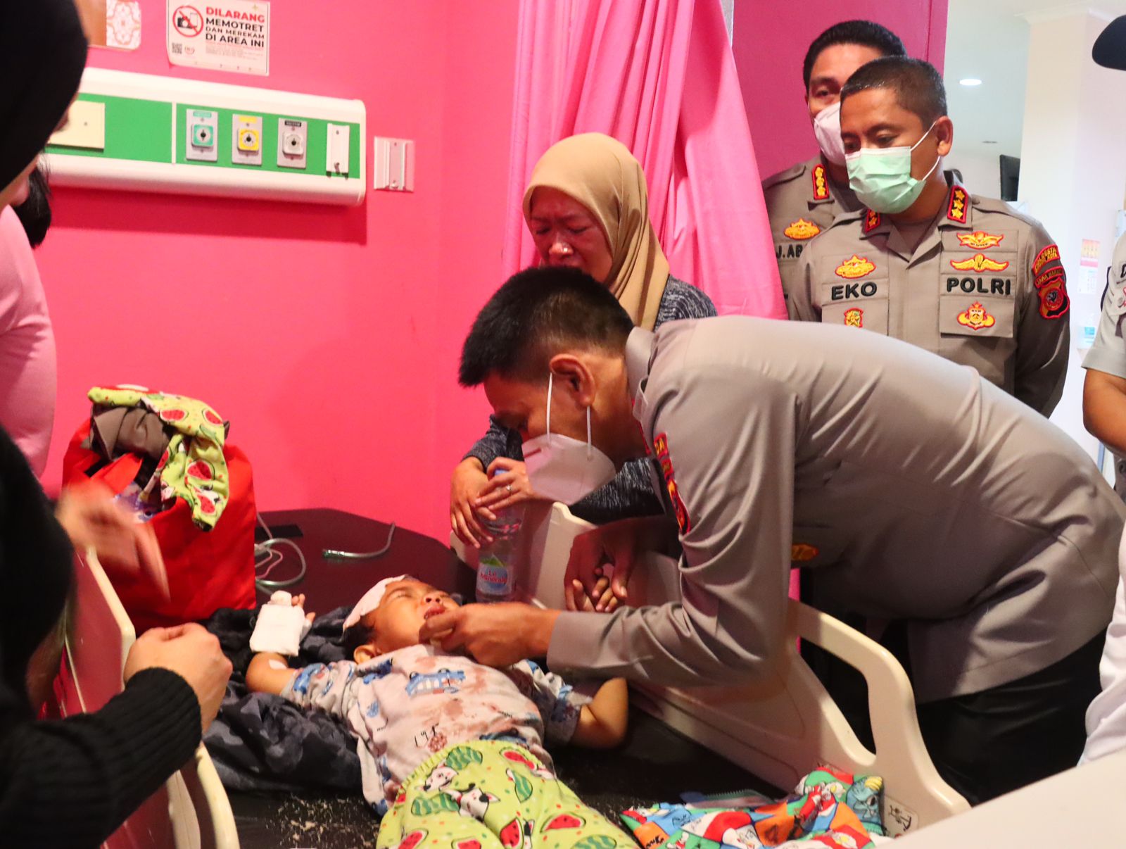 Sambil membungkuk dan mendekati wajah balita yang dahi serta lengannya diperban, Kapolda Jabar berucap “Diobatin ya nak..” ujarnya, Rabu (5/2/2025)