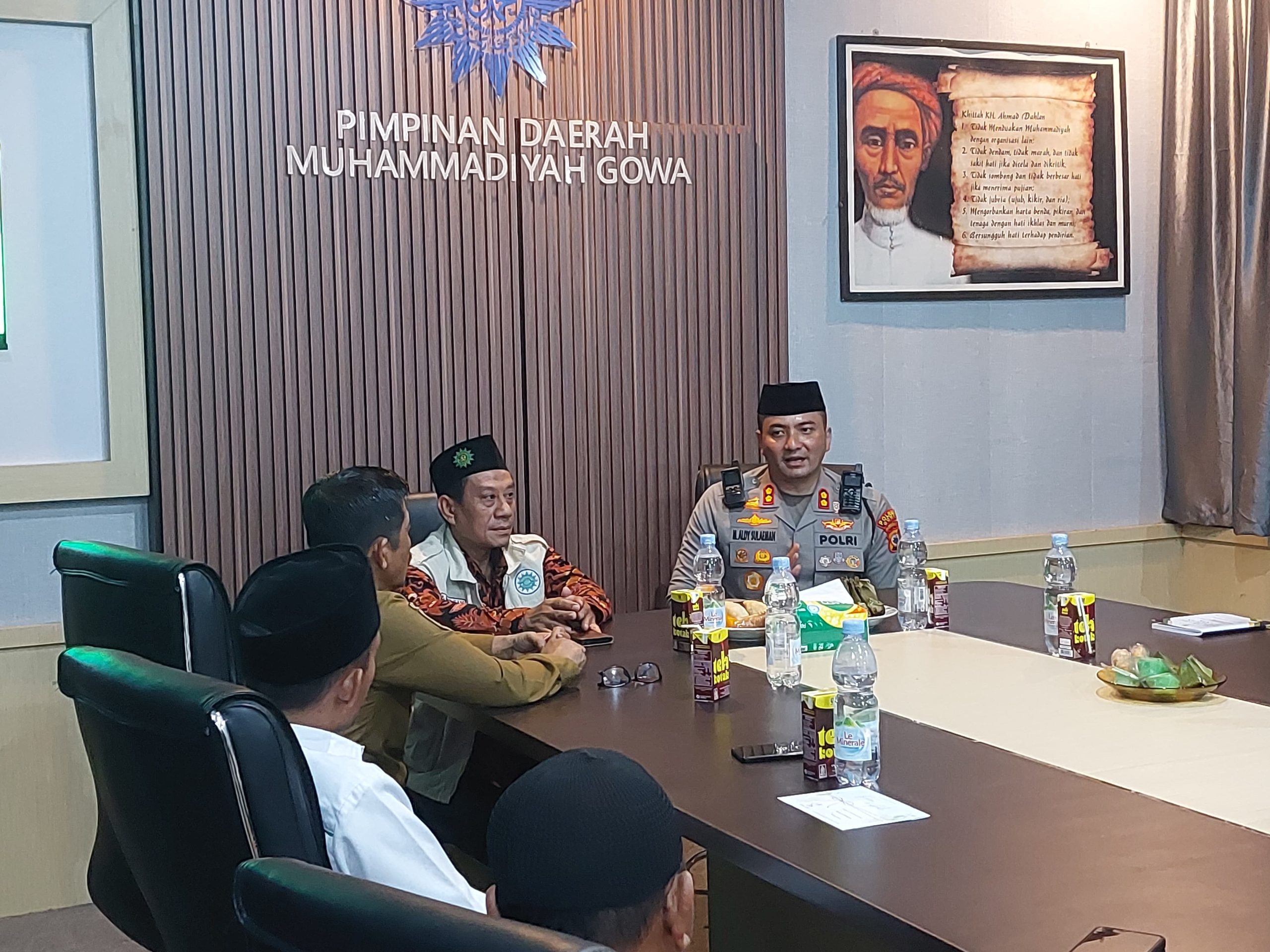 Dalam kunjungannya, Kapolres Gowa disambut hangat oleh Ketua PDM Gowa, H. Ardan Ilyas, S.Pdi, M.A, beserta jajaran pengurus. Pada kesempatan itu, Kapolres memperkenalkan diri sebagai pejabat baru di Polres Gowa serta menyampaikan harapan agar terjalin sinergitas dan kerja sama yang kuat antara Polres Gowa dan Muhammadiyah dalam menjaga keamanan dan ketertiban masyarakat.