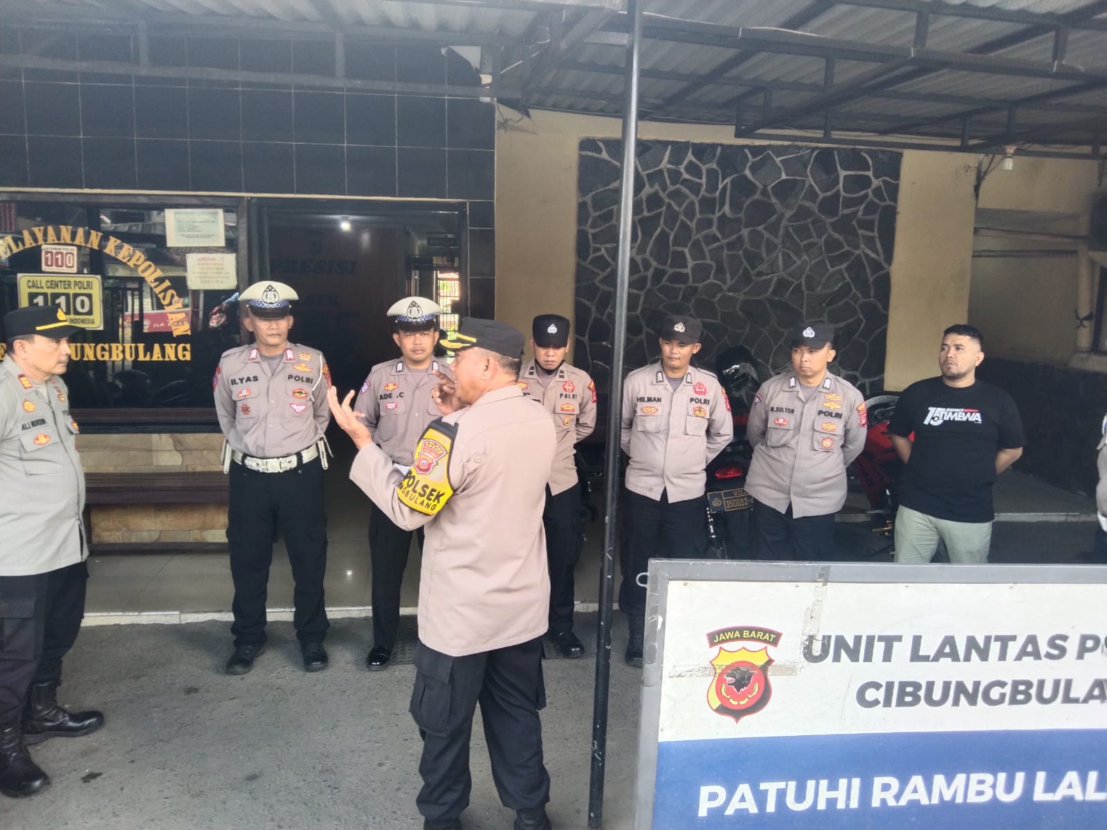 POLRES BOGOR – Humas Polsek Cibungbulang – Kapolsek Cibungbulang Kompol M. Heri Hermawan bersama Petugas gabungan melaksanakan pengamanan malam takbir Idul Fitri 2025, Berlokasi di Mako Polsek Cibungbulang. Selasa (1/4//2025).