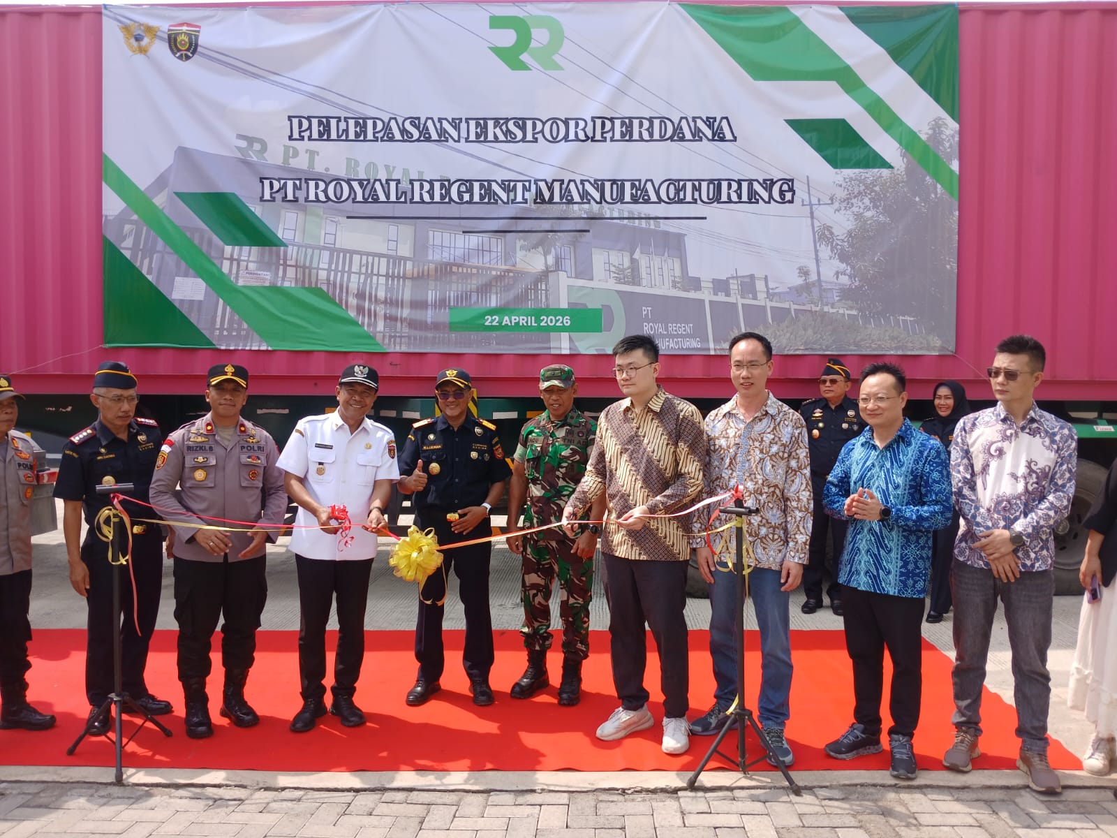 Acara ini dihadiri oleh Kasdim 0805/Ngawi Mayor Caj Sindu, Wakil Bupati Ngawi Dwi Rianto Jatmiko, serta Kepala Bea Cukai Wilayah Jawa Timur, Muhamad Lukman. Turut hadir pula Direktur Utama PT Royal Regent Manufacturing, Mr Felix, beserta jajaran manajemen perusahaan.