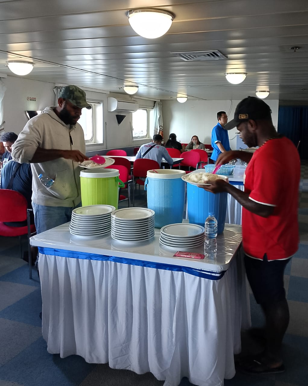Kebersihan kapal yang terjaga tidak hanya di ruang umum, tetapi juga di kamar-kamar tidur, toilet, serta area makan. Para petugas kapal telah bekerja keras membersihkan setiap bagian kapal dan memastikan bahwa penumpang nantinya akan merasa aman dan nyaman selama perjalanan.
