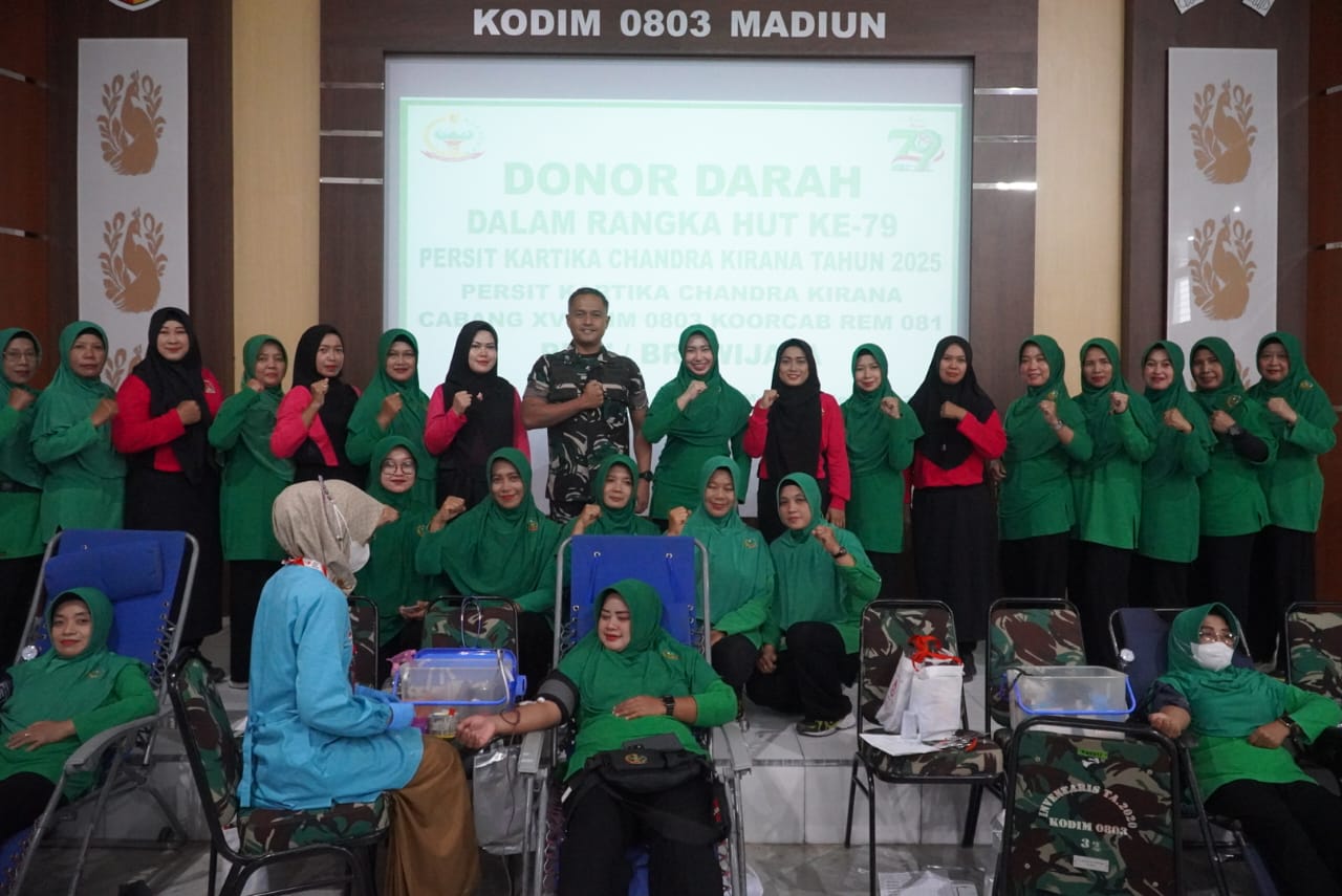 MADIUN, BUSERJATIM.COM GROUP – Dalam rangka memperingati Hari Ulang Tahun (HUT) ke-79 Persit Kartika Candra Kirana, Kodim 0803/Madiun menggelar kegiatan donor darah yang berlangsung di Aula Makodim 0803/Madiun, Rabu (5/2). Acara ini dibuka langsung oleh Dandim 0803/Madiun, Letkol Kav Widhi Bayu Sudibyo, dan dihadiri oleh Ketua Persit Kartika Chandra Kirana Cabang XVII Kodim 0803/Madiun, Ibu Ika Widhi Bayu Sudibyo.