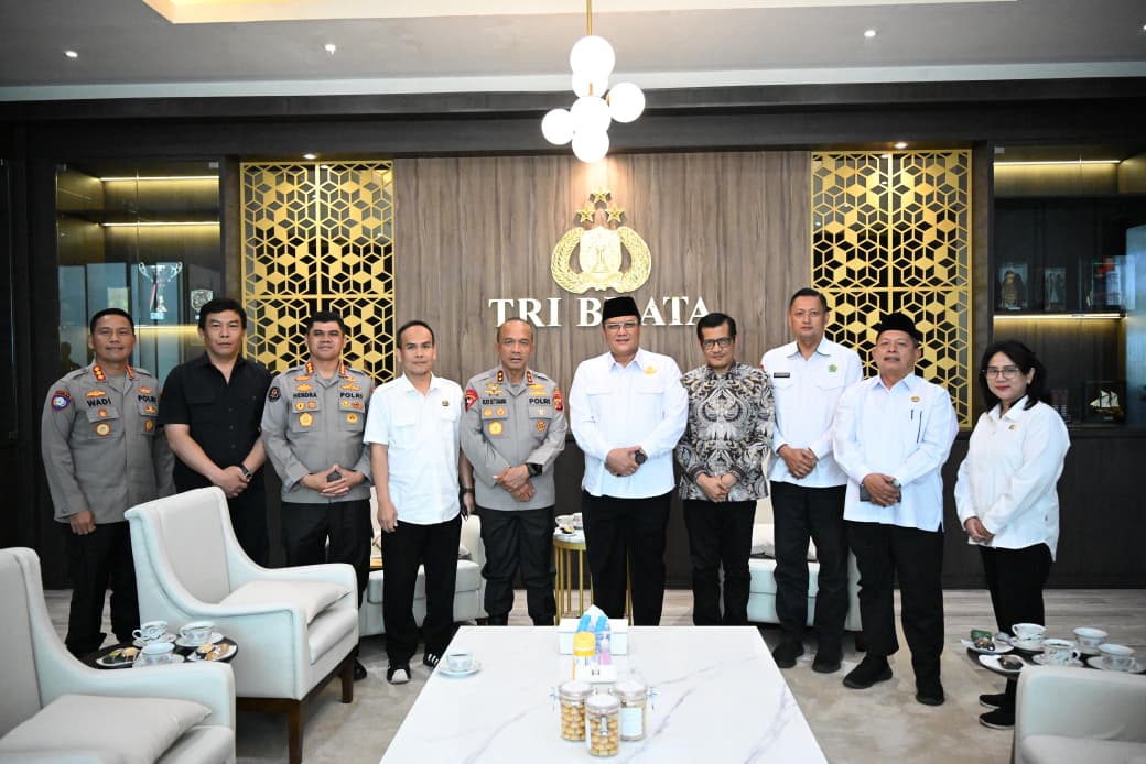 Kapolda Jawa Barat Irjen Pol. Dr. Rudi Setiawan, S.I.K., S.H., M.H. menerima audiensi Kepala Kantor Wilayah Kementerian Agama Provinsi Jawa Barat H. Dudu Rohman, S.Ag., M.Si. di Ruang Courtesy Call Kapolda, Polda Jawa Barat, Selasa (13/1/2026). Audiensi tersebut membahas kolaborasi pemanfaatan masjid sebagai rest area dan pos pelayanan mudik pada pelaksanaan Operasi Ketupat 2026.
