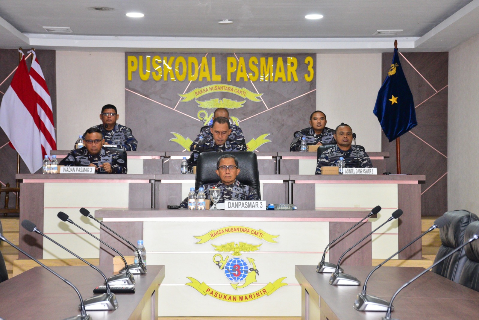 KOTA SORONG PBD, BUSERJATIM.COM GROUP (04/02/25) – Komandan Pasmar 3 Brigjen TNI (Mar) Andi Rahmat M., didampingi Wakil Komandan Pasmar 3 Kolonel Mar David Candra Viasco, S.E., M.M., M.Sc., beserta para Asisten Danpasmar 3 mengikuti Video Conference (Vicon) Taklimat Awal Audit ketaatan dan Audit Kinerja Itjen TNI Periode I Tahun 2025 di Komando/Satuan TNI wilayah Papua Barat dan Papua Barat Daya bertempat di ruang Puskodal Mako Pasmar 3, Kesatrian Agoes Soebekti, Jl. Sorong-Klamono, Km.16, Distrik Klaurung, Kota Sorong, Papua Barat Daya. (03/02).