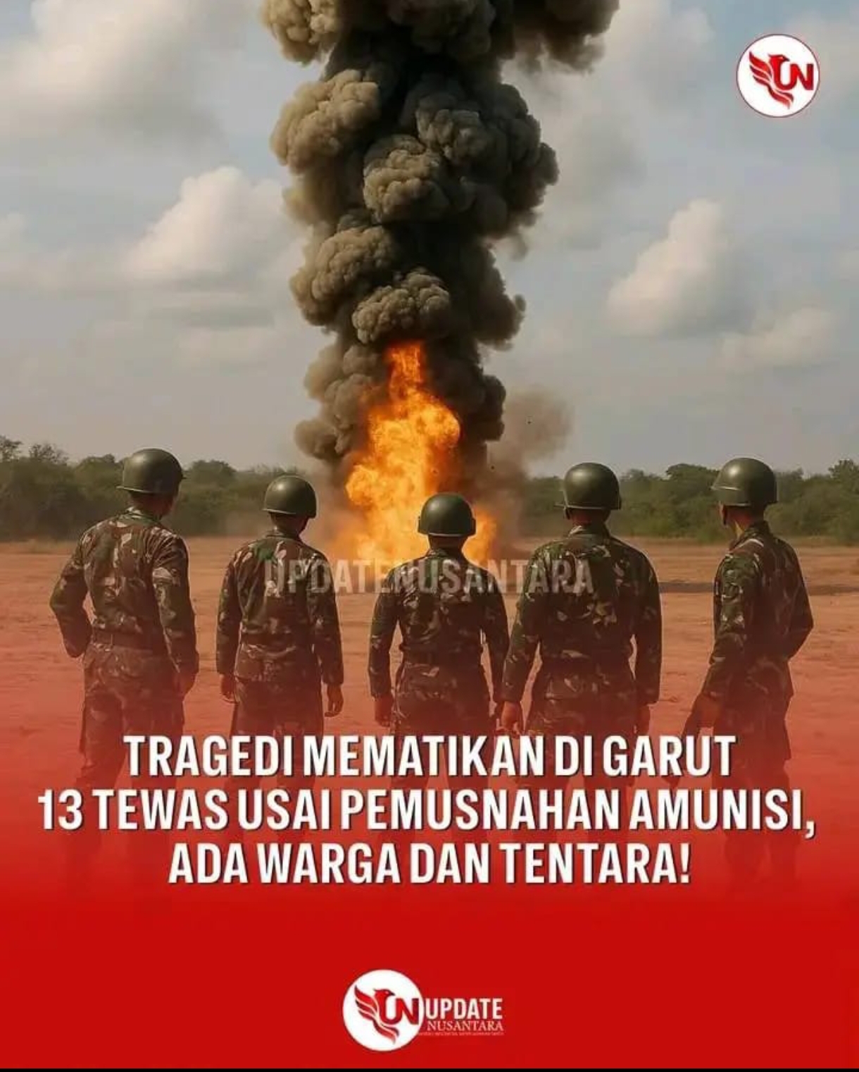Garut, Jawa Barat — Ledakan dahsyat terjadi saat kegiatan pemusnahan amunisi kedaluwarsa oleh TNI di Kampung Leuwikeusik, Desa Sagara, Kecamatan Cibalong, Kabupaten Garut, Senin (12/5/2025) pagi. Peristiwa ini menewaskan 13 orang, terdiri dari empat anggota TNI dan sembilan warga sipil.