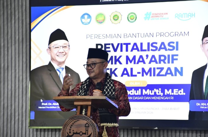 Majalengka – Menteri Pendidikan Dasar dan Menengah Republik Indonesia, Abdul Mu’ti bersama Wakil Bupati Majalengka, Dena Muhamad Ramdhan, menghadiri peresmian Revitalisasi Pendidikan dan Sosialisasi Tes Kemampuan Akademik (TKA) 2026 yang digelar di SMP Negeri 1 Jatiwangi, Selasa (20/1/2026).