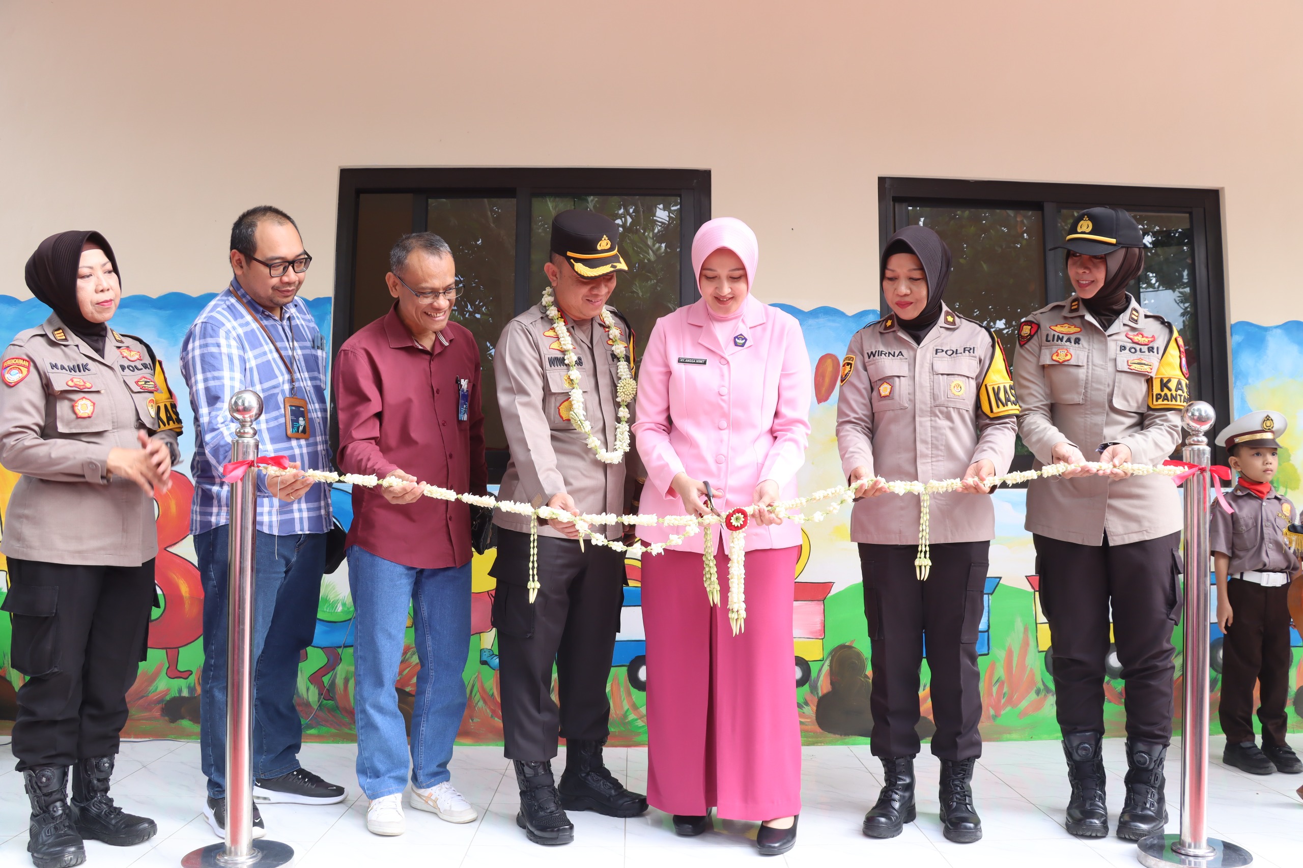 Selain pemotongan pita, kegiatan peresmian juga dilanjutkan dengan pengecekan fasilitas ruang kelas di TK Kemala Bhayangkari 45 Kalipang Lotim.