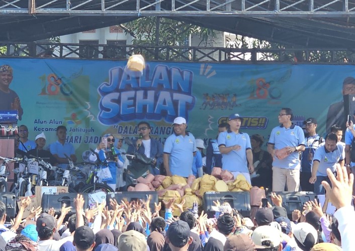 Majalengka – Semangat kebersamaan dan antusiasme masyarakat mewarnai kegiatan Jalan Santai dalam rangka memeriahkan Hari Jadi ke-186 Kabupaten Majalengka yang digelar di Alun – alun Jatitujuh, Selasa (3/2/2026).