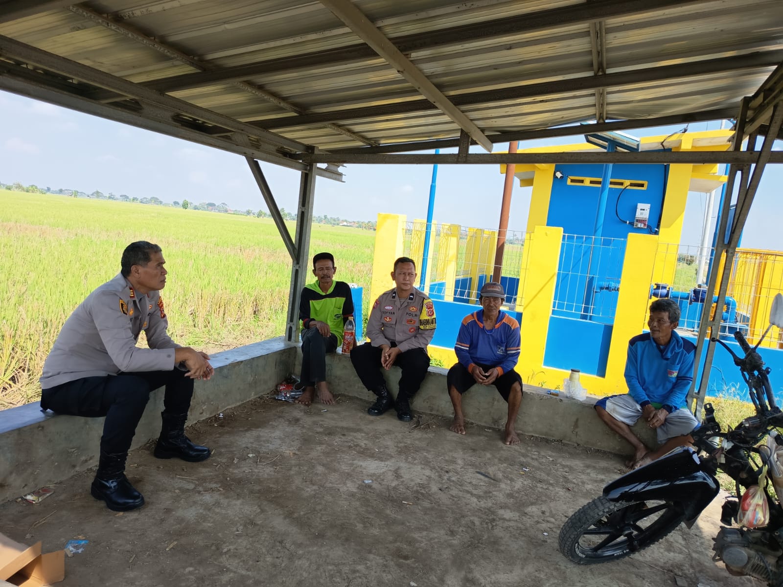 Dengan konsep door-to-door dan sambang warga, kepolisian menyempatkan diri untuk duduk bersama para petani di gubuk area persawahan. Suasana yang akrab dan tanpa sekat ini dimanfaatkan untuk melakukan dialog terkait situasi keamanan dan ketertiban masyarakat (Kamtibmas), serta menampung aspirasi masyarakat terkait kendala yang dihadapi dalam aktivitas pertanian sehari-hari.