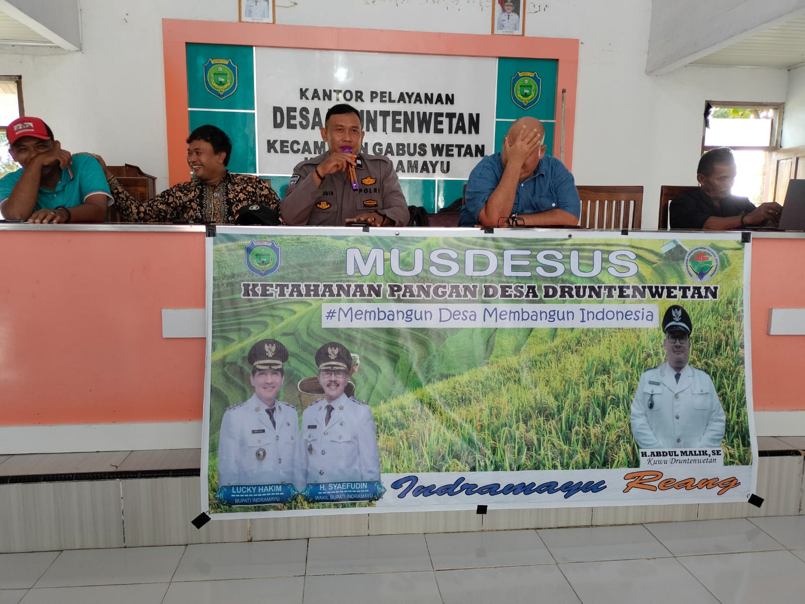 Indramayu, – Kanit Binmas Polsek Gabuswetan jajaran Polres Indramayu Polda Jabar melaksanan giat menghadiri Musyawarah Desa Khusus (Musdesus) Desa Druntenwetan Kecamatan Gabuswetan Kabupaten Indramayu, Jum’at (21/3/2025).